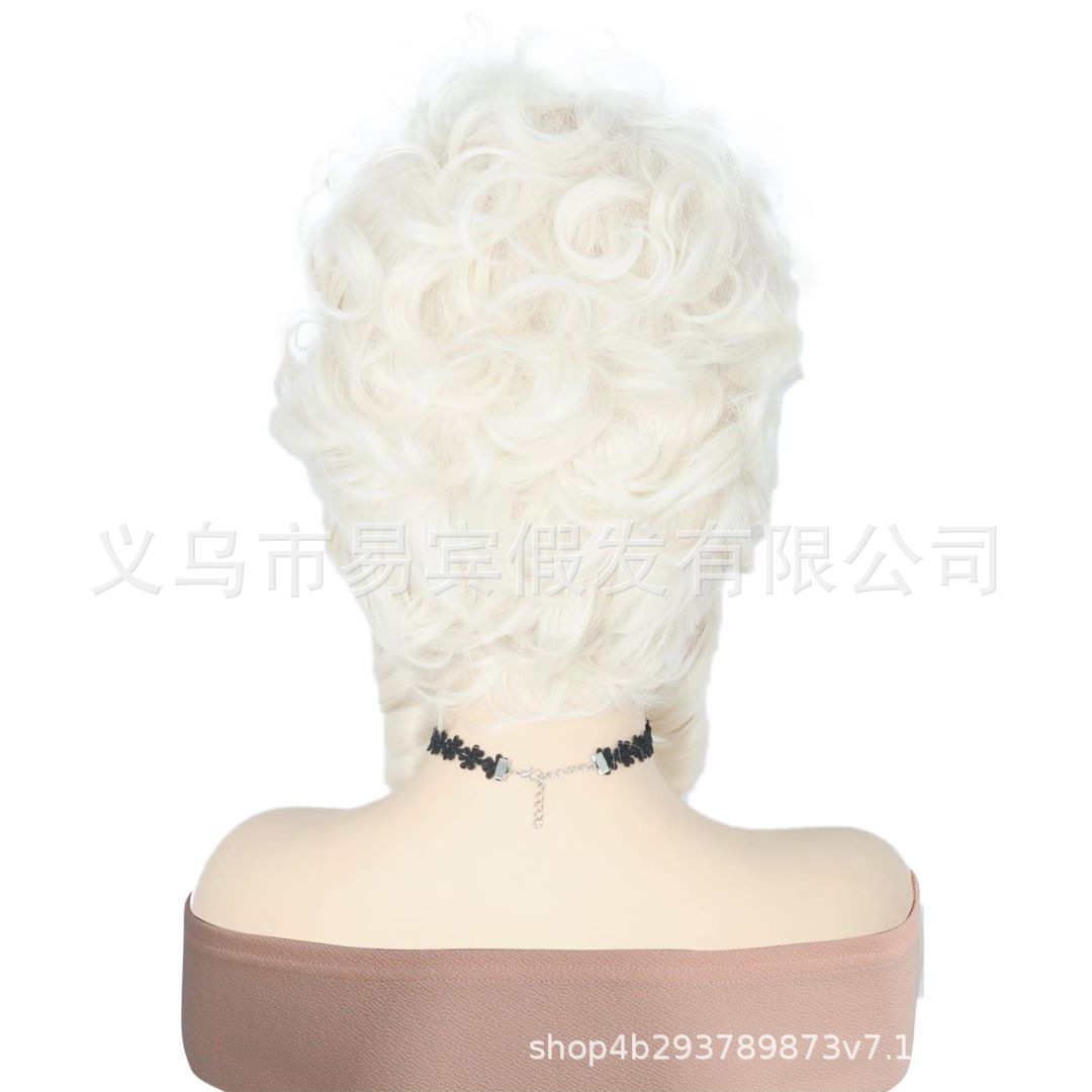 ファッションかつらの女性欧米のショートヘアは銀白色の黒い巻き髪の宮廷風の復古的なシミュレーションのローマ巻きの頭のカバーをカバーします。