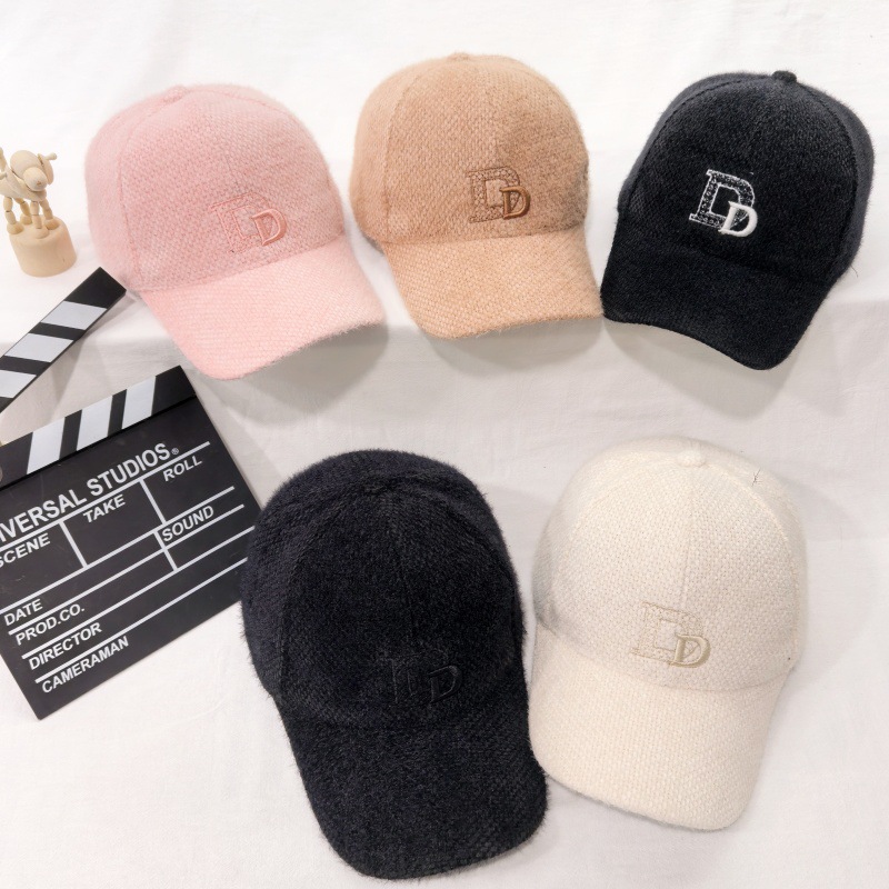 加厚保暖时尚绒面帽冬季洋气女士韩版新款棒球帽百搭字母鸭舌帽