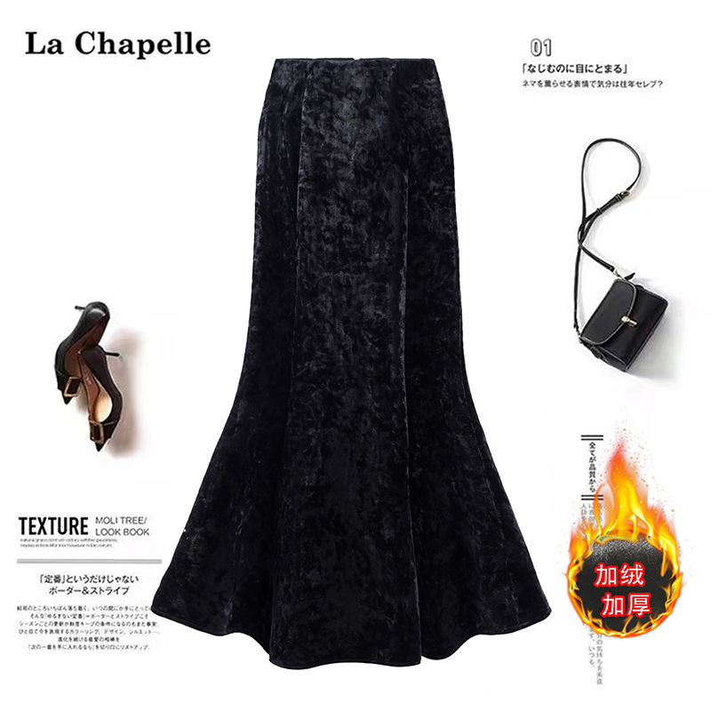 冬にはベルベットの保温スカートの女性の国風ベルベットの尾のスカートの気質に合わせてロングスカートの女性の味が痩せているスカートが見える