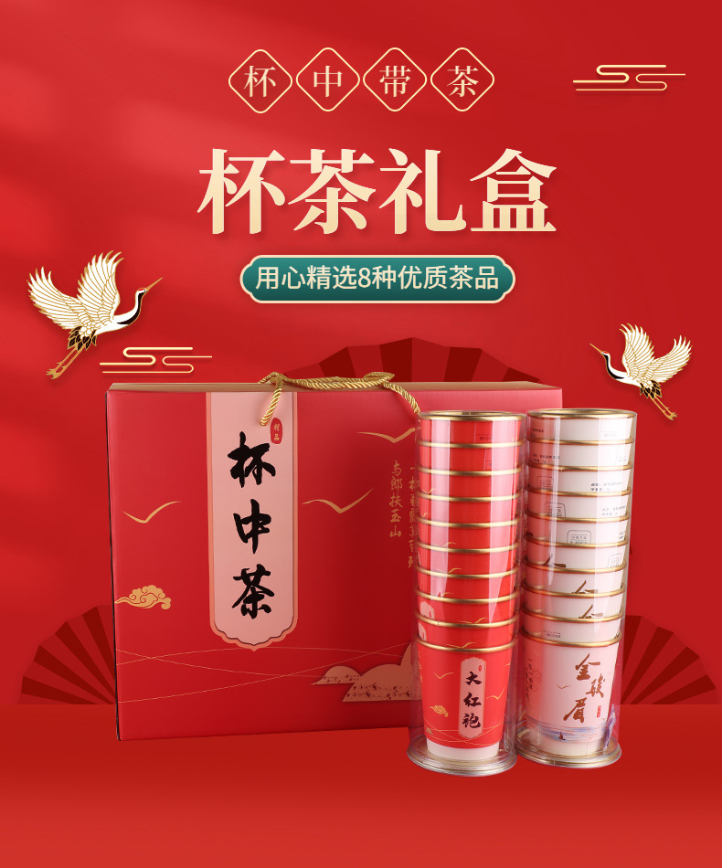 カップの中にお茶のプレゼントを入れて80杯の使い捨て紙コップとお茶の祝日のプレゼントを入れてお茶の隠れたカップを入れます。