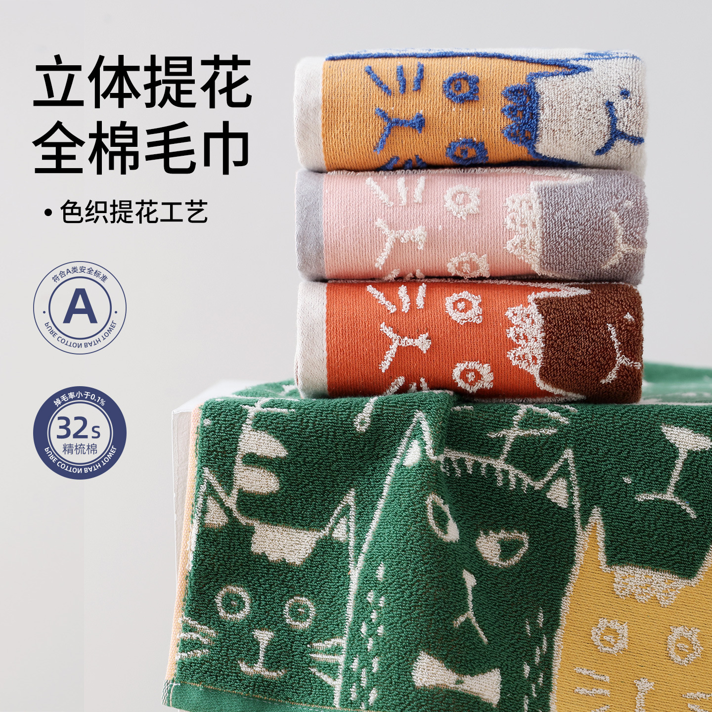 朴希抗菌纯棉毛巾提花猫擦脸巾巾涂鸦家用洗脸巾加厚全棉面巾批发