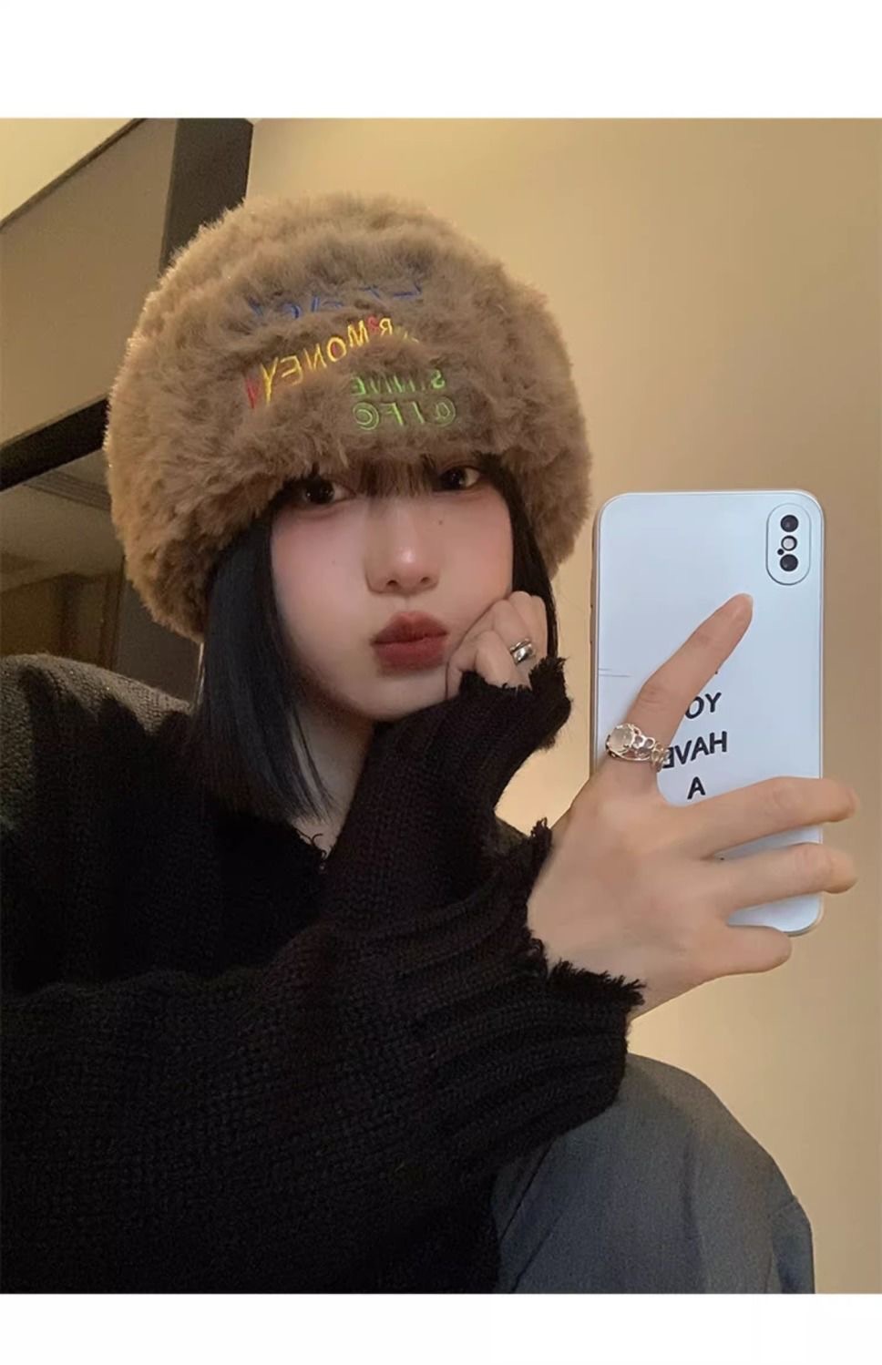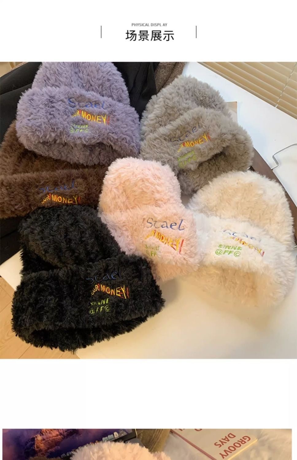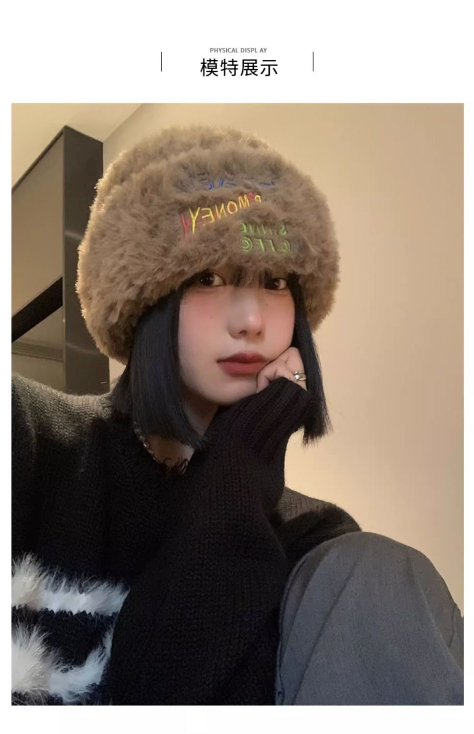 秋冬の女性用の毛皮のようなニット帽、大きな頭囲、厚くて暖かいウールの帽子、韓国風の顔が見える小さな帽子、トレンディです。