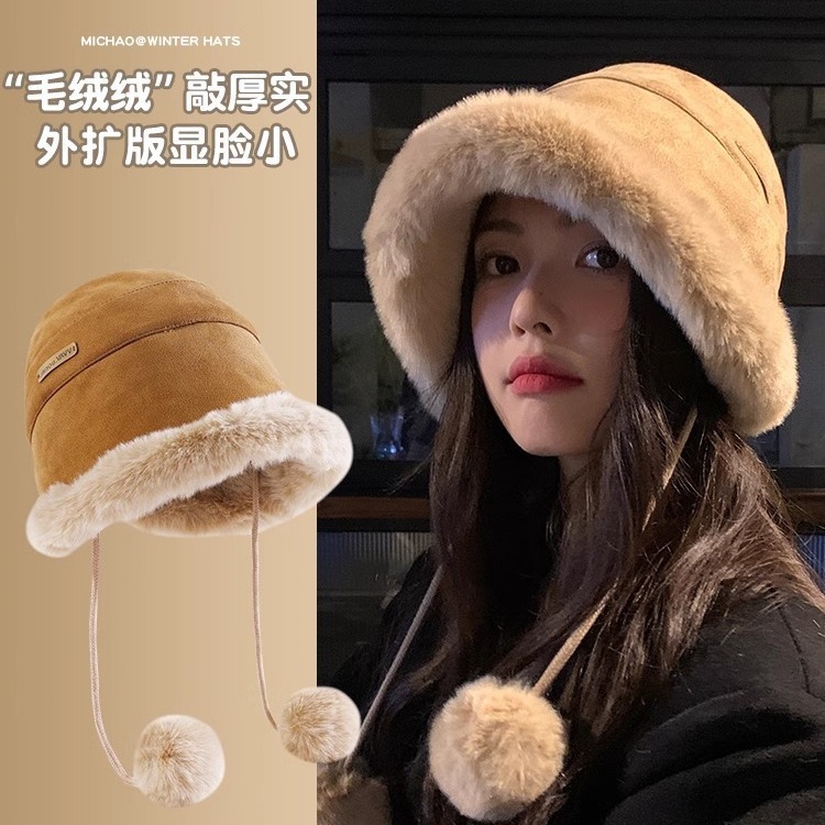 韓国版のぬいぐるみの漁師の帽子の女性の冬の保温の耳の盆の帽子の甘い色の厚いネットの赤い顕痩せた帽子の成人
