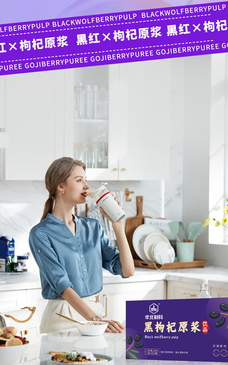 華北製薬黒クコ原パルプ100ml(10ml * 10袋)/箱開袋で黒クコ植物飲料を飲む