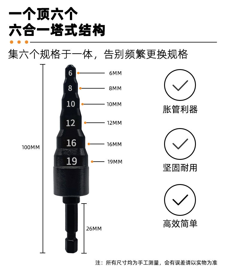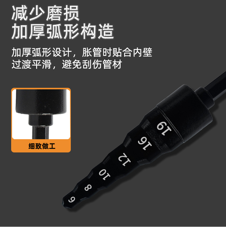 仕様と型式 シックスインワンパイプエキスパンダー(74g)*ブラック*6-8-10-12-16-19mm*カーボンスチール