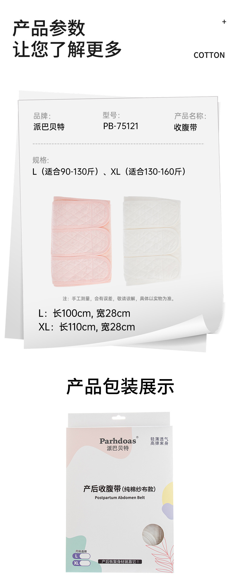 派巴贝特纯棉收腹带四季通用型束缚带顺产剖腹产通用75121
