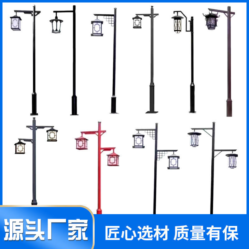 屋外中国風アンティークガーデンライト 3.4m 風景ライト公園防水双頭街路灯ソーラーレトロランタン