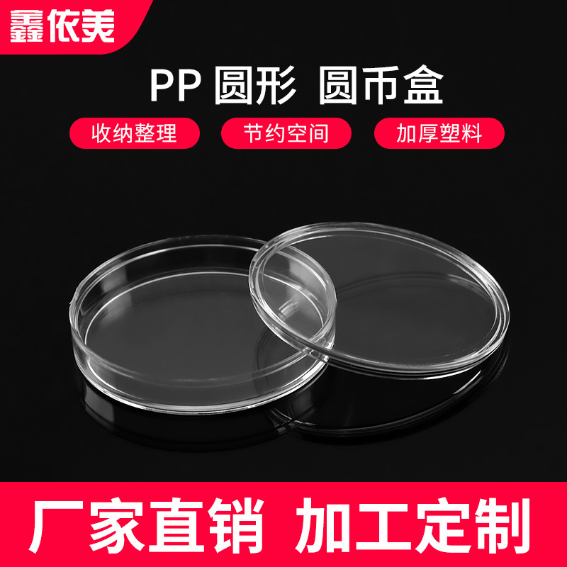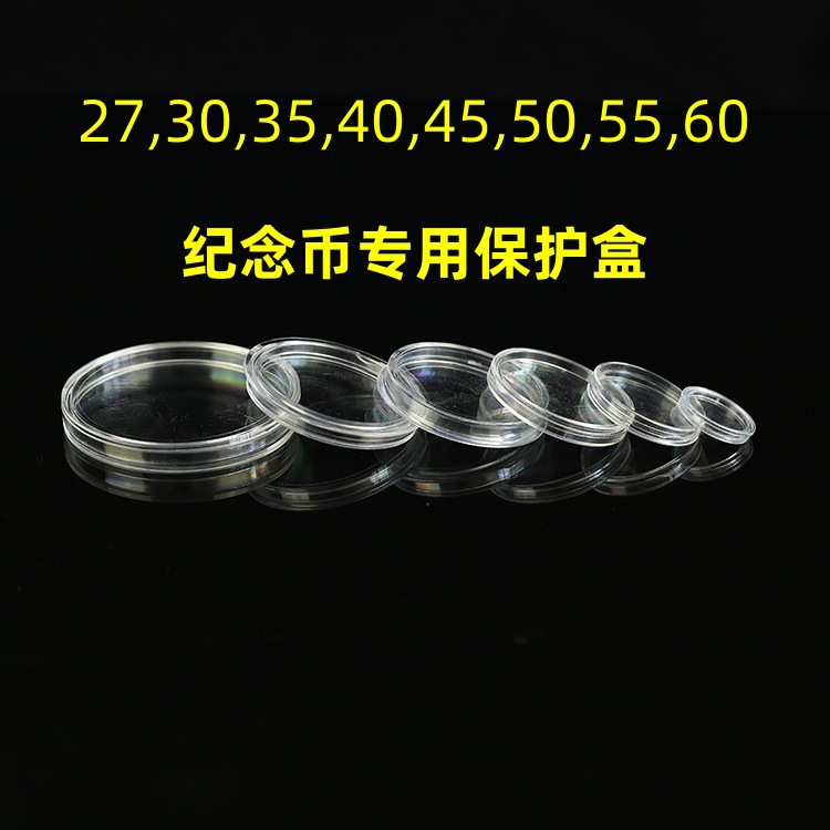 45mm纪念币硬币保护盒PS塑料盒银币收藏盒小圆盒纪念章透明圆盒