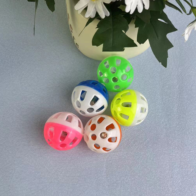 猫のおもちゃボール、音が鳴るベル、インタラクティブな猫じゃらし、多色プラスチック製中空ペット用品、卸売ミニ