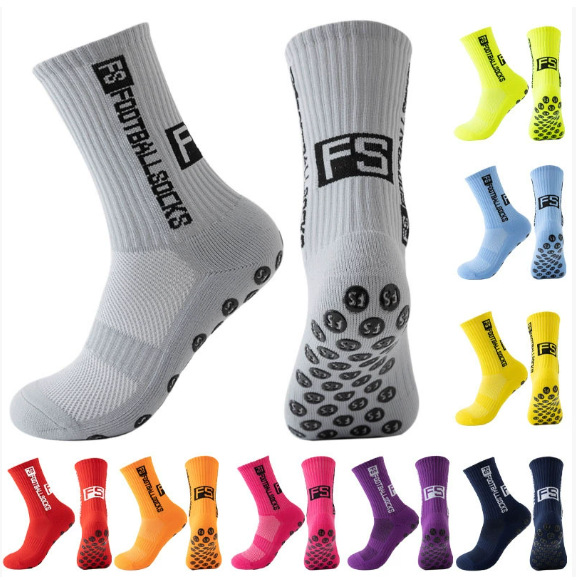 FS新品吸盤クロスボーダーサッカー靴下1足滑り止めタオルサッカースポーツトレーニングシリカゲル男女ラグビー靴下