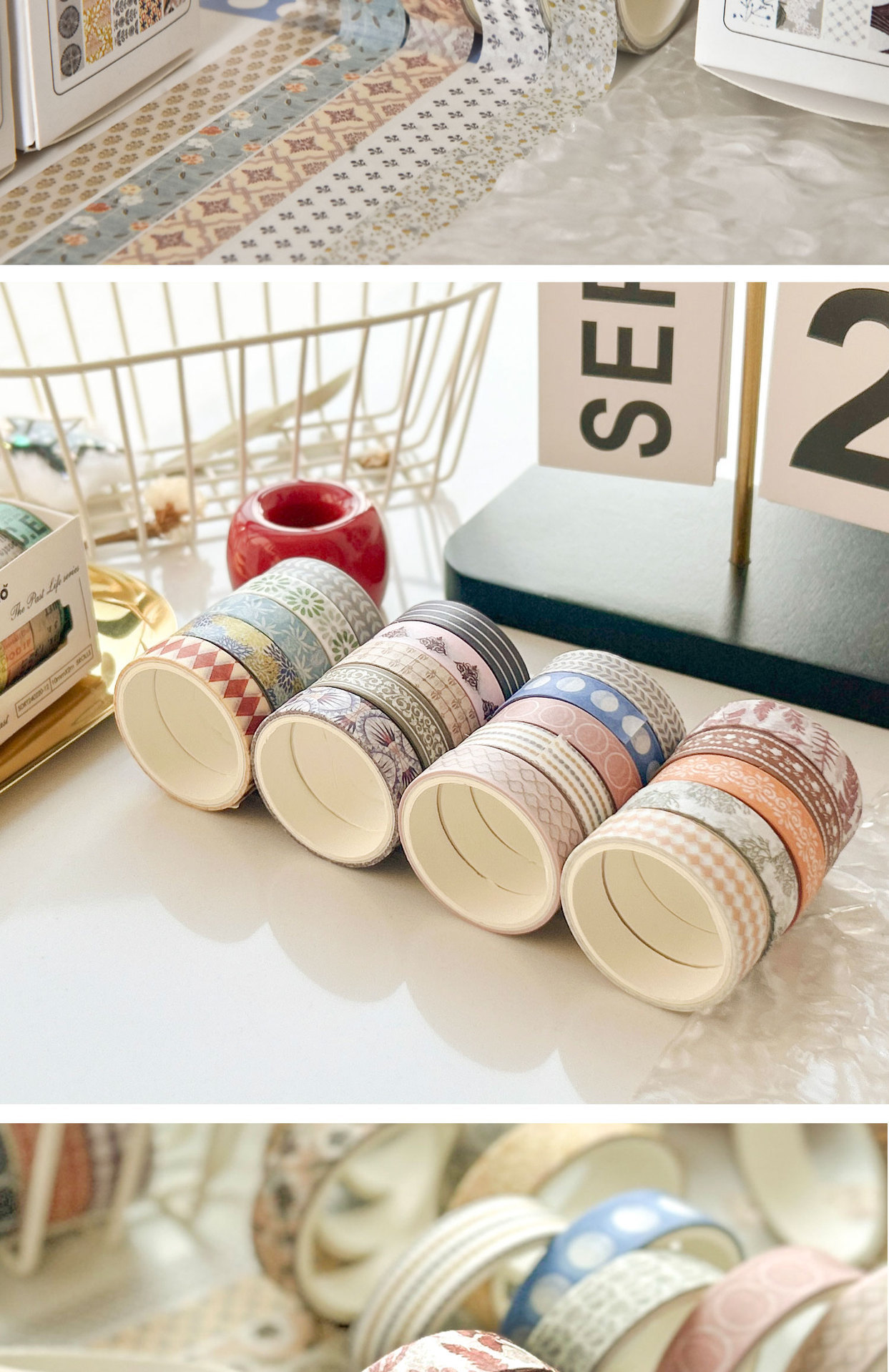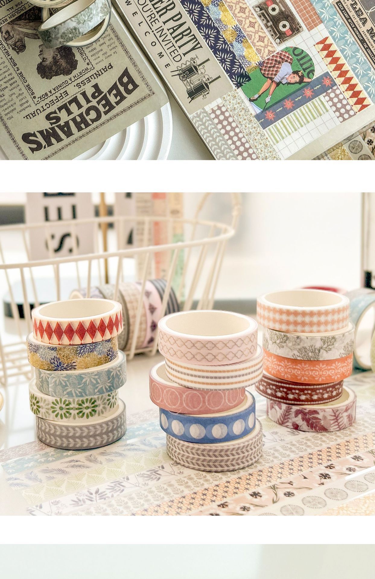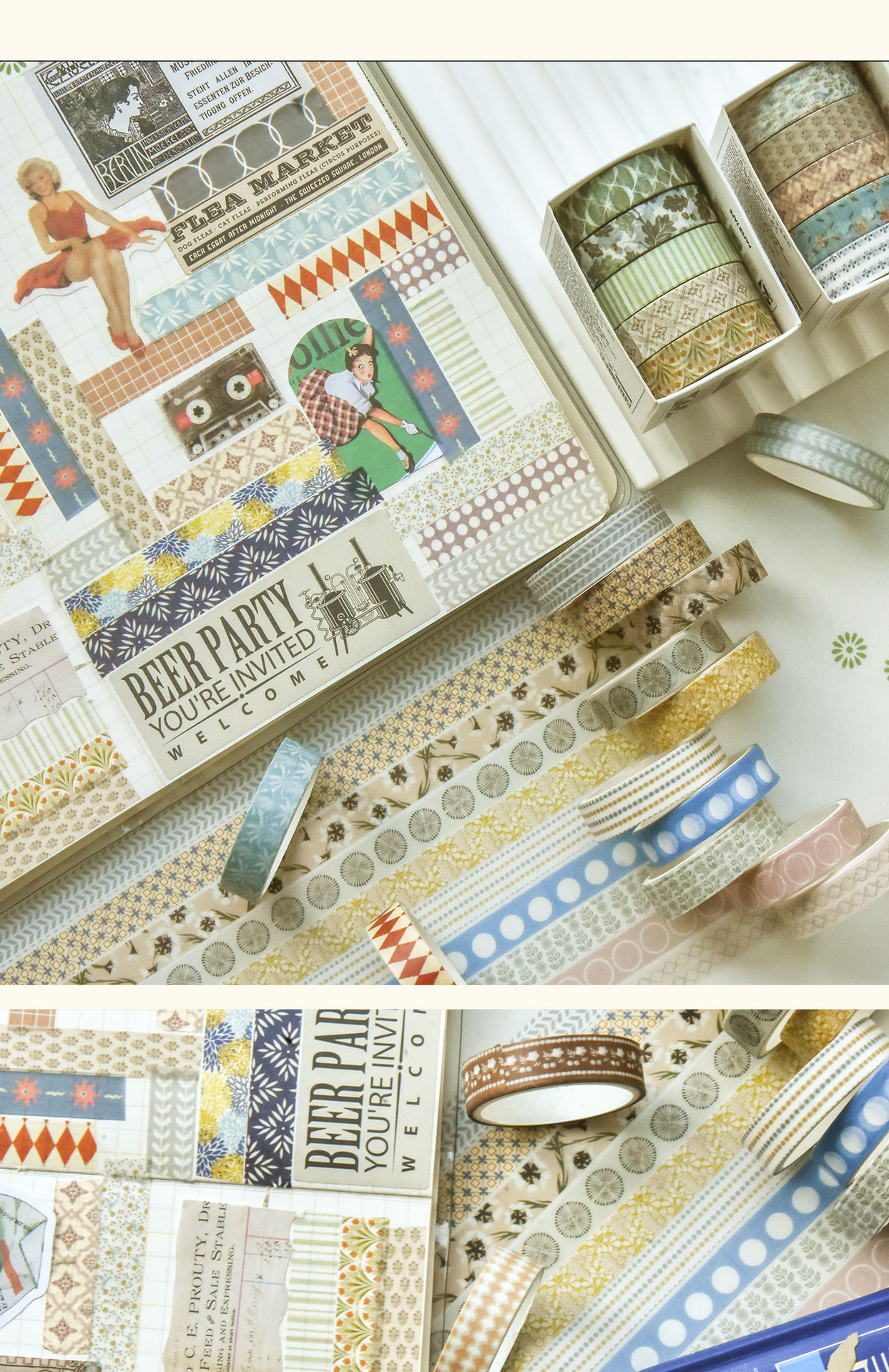 青ガーディアン 10ロール 和紙テープコンビセット 細線 幾何学模様 花ボーダー レトロハンドブック素材ステッカー