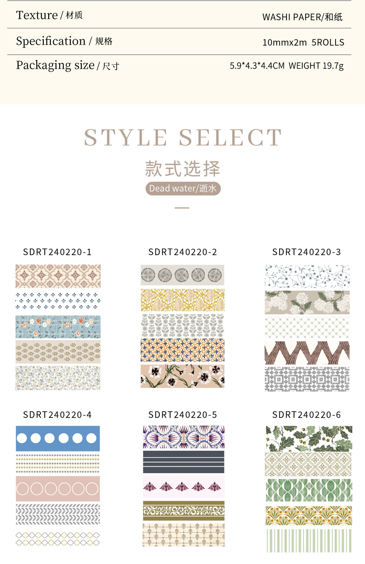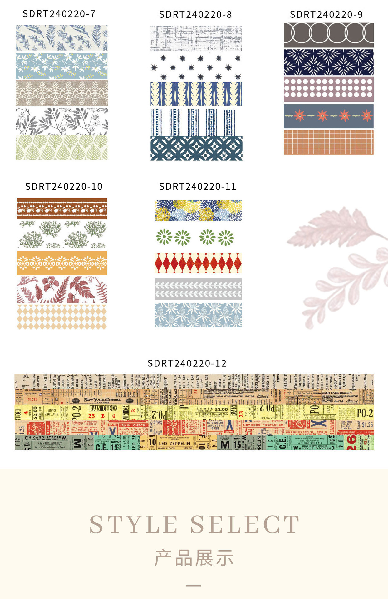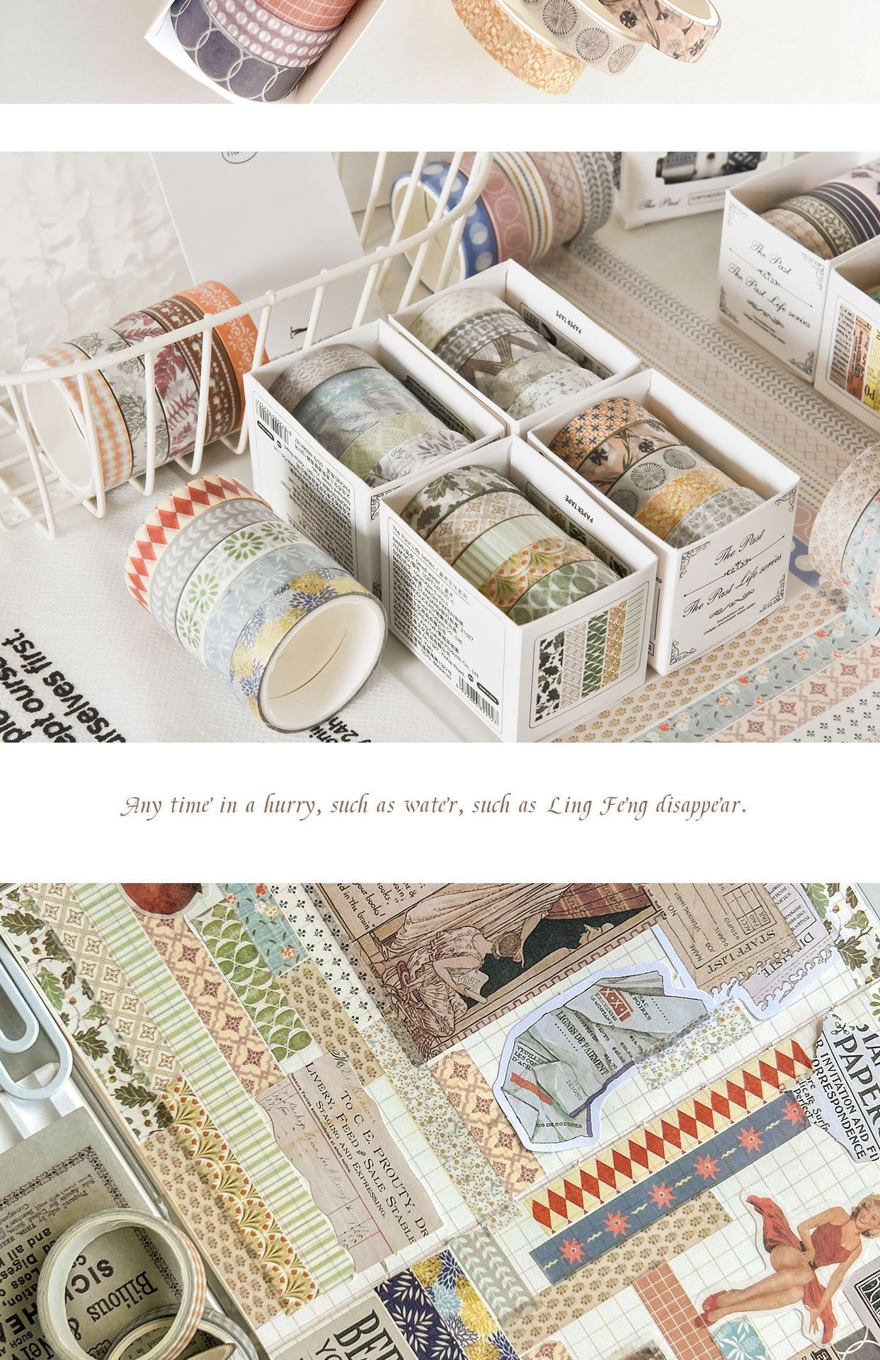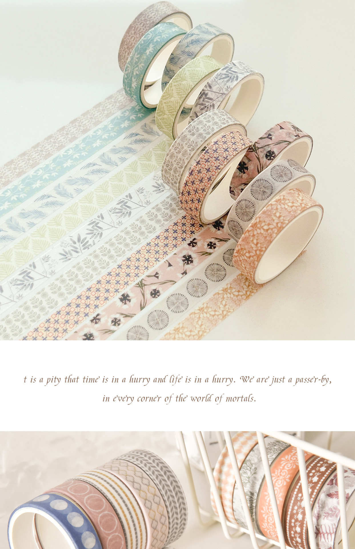 青ガーディアン 10ロール 和紙テープコンビセット 細線 幾何学模様 花ボーダー レトロハンドブック素材ステッカー