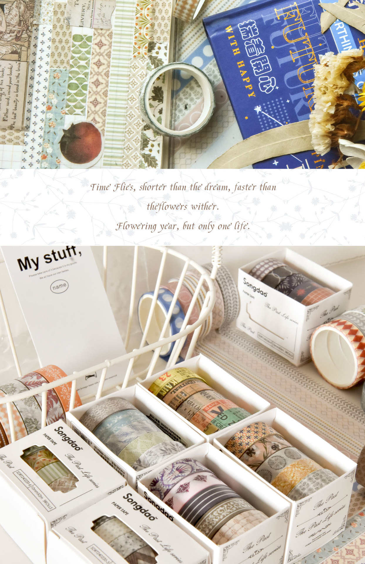 春の花のロマンチックな箱入り5巻と紙テープins清新でシンプルな日常の手帳DIY装飾ステッカー手帳