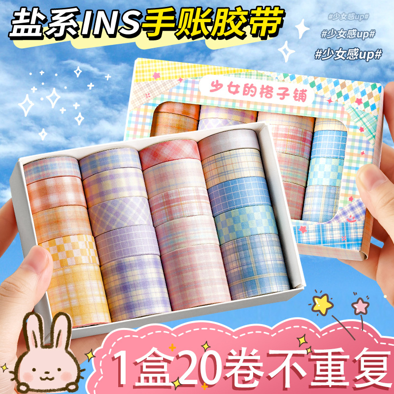 格子テープシール高颜値ins风箱入り漫画手帐手帳枠テープフィルムセット卸売