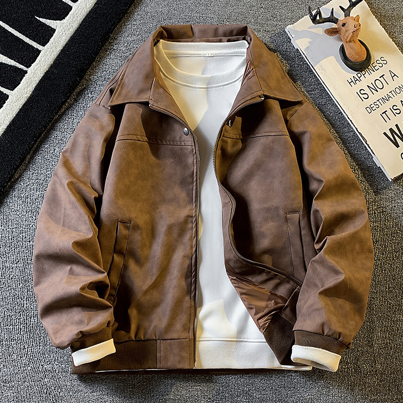 アメリカのレトロな高街の美ラードのコーヒー色の皮の服の男性の潮のブランドの襟のジャケットのヴィンテージのスエードの毛皮のコート