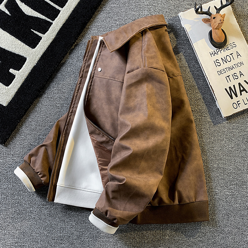 秋冬モデルのベルベットアメリカ重ポンド復古野球服男性ゆるいカジュアルジャケット自宅図 # XXF012