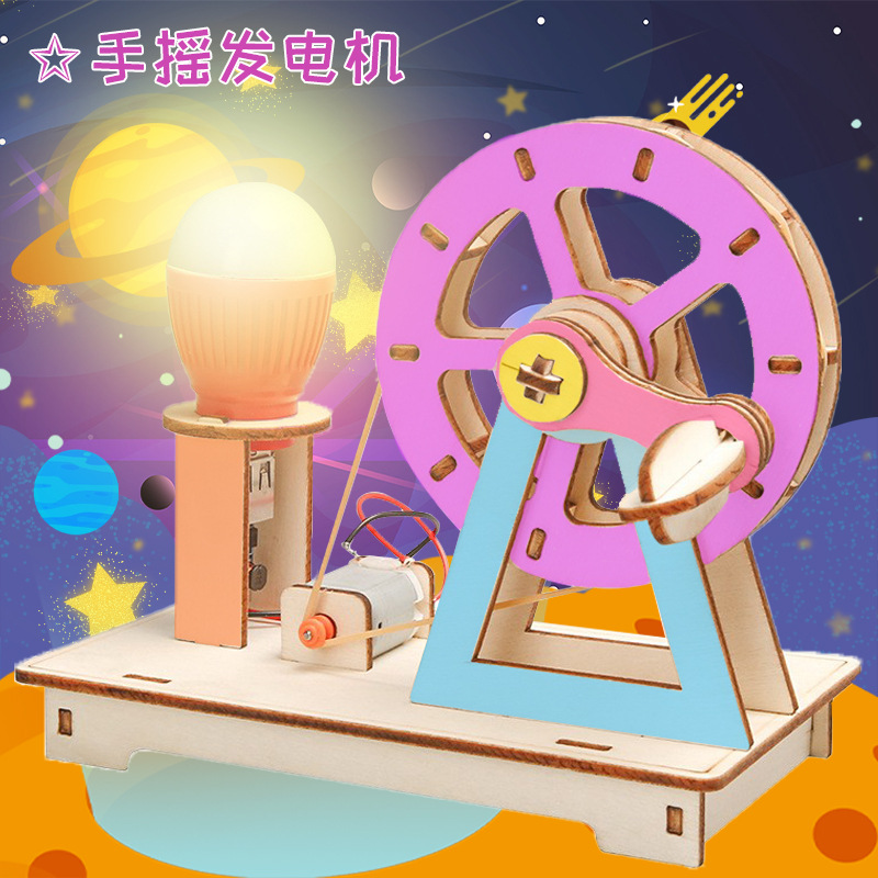 DIY手回し発電機steam科学技術小製作科学物理小実験手作業で子供の教具を組み立てる