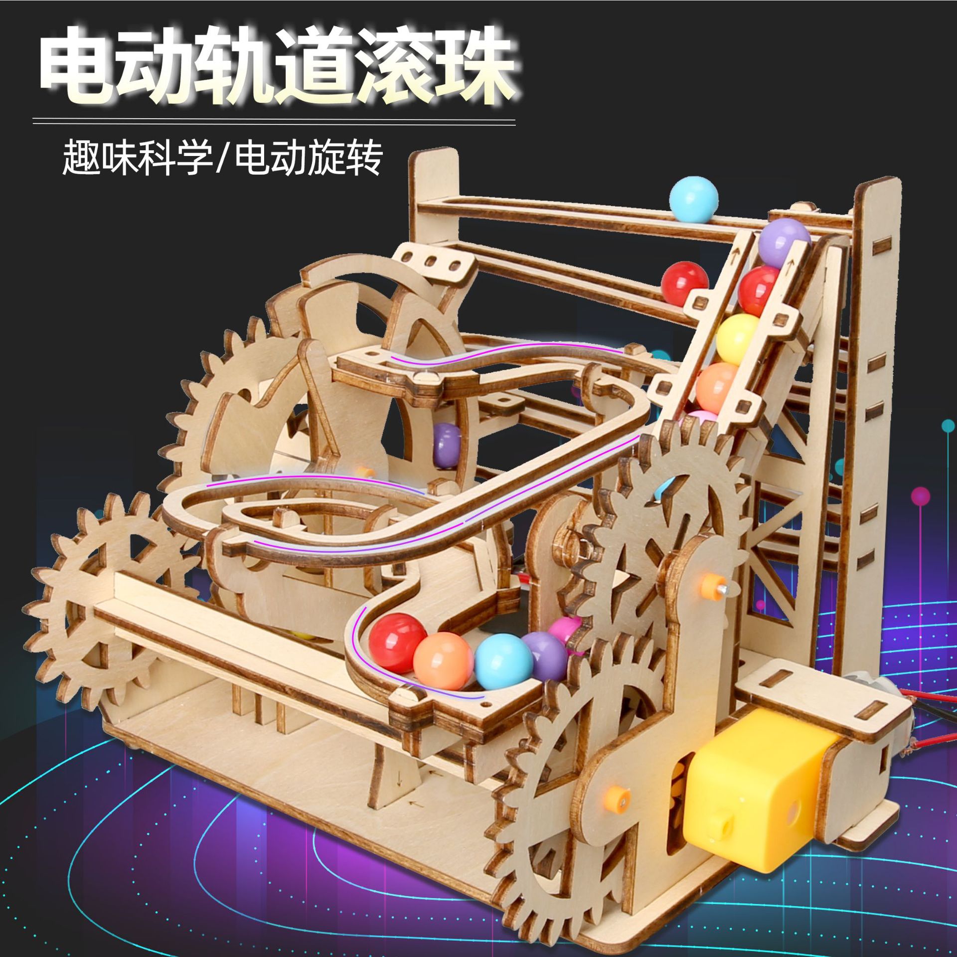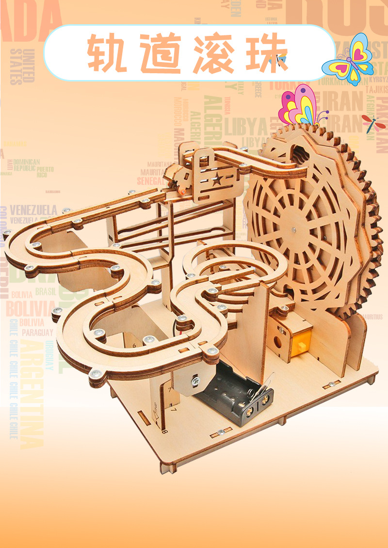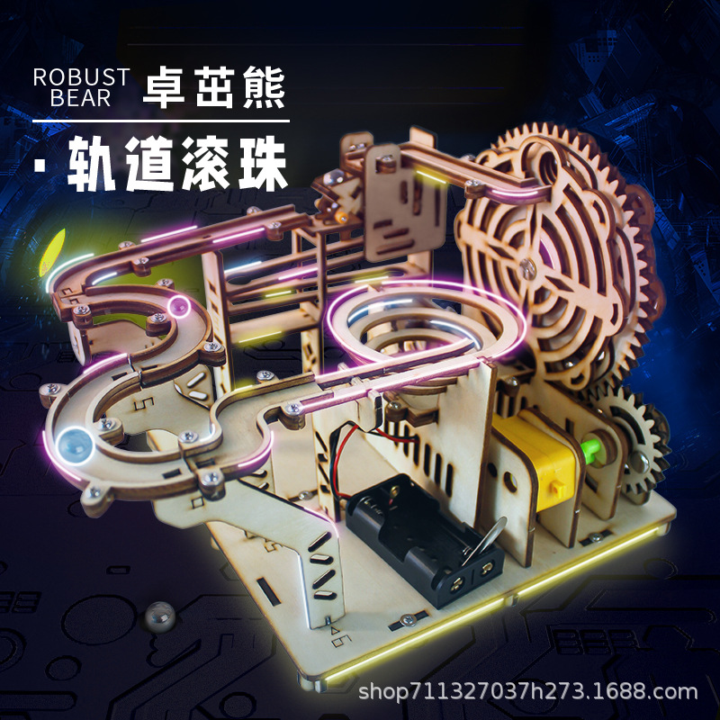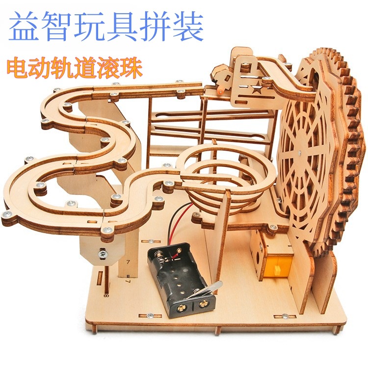 科技潮玩木制电动轨道滚珠玩具中小学生手工积木儿童益智拼装玩具