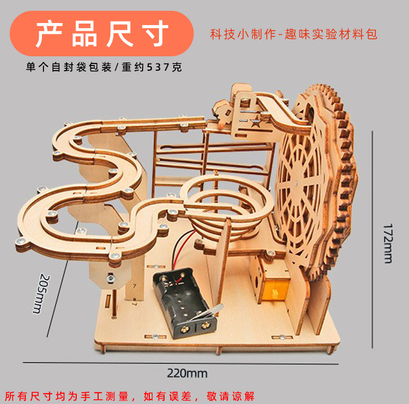 diy科技小制作木制轨道滚珠过山车中小学生科学手工拼装益智玩具