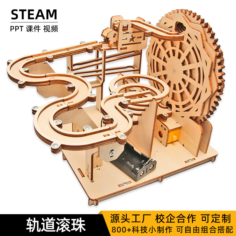 diy科技小制作木制电动轨道滚珠中小学生手工积木拼装玩具益智