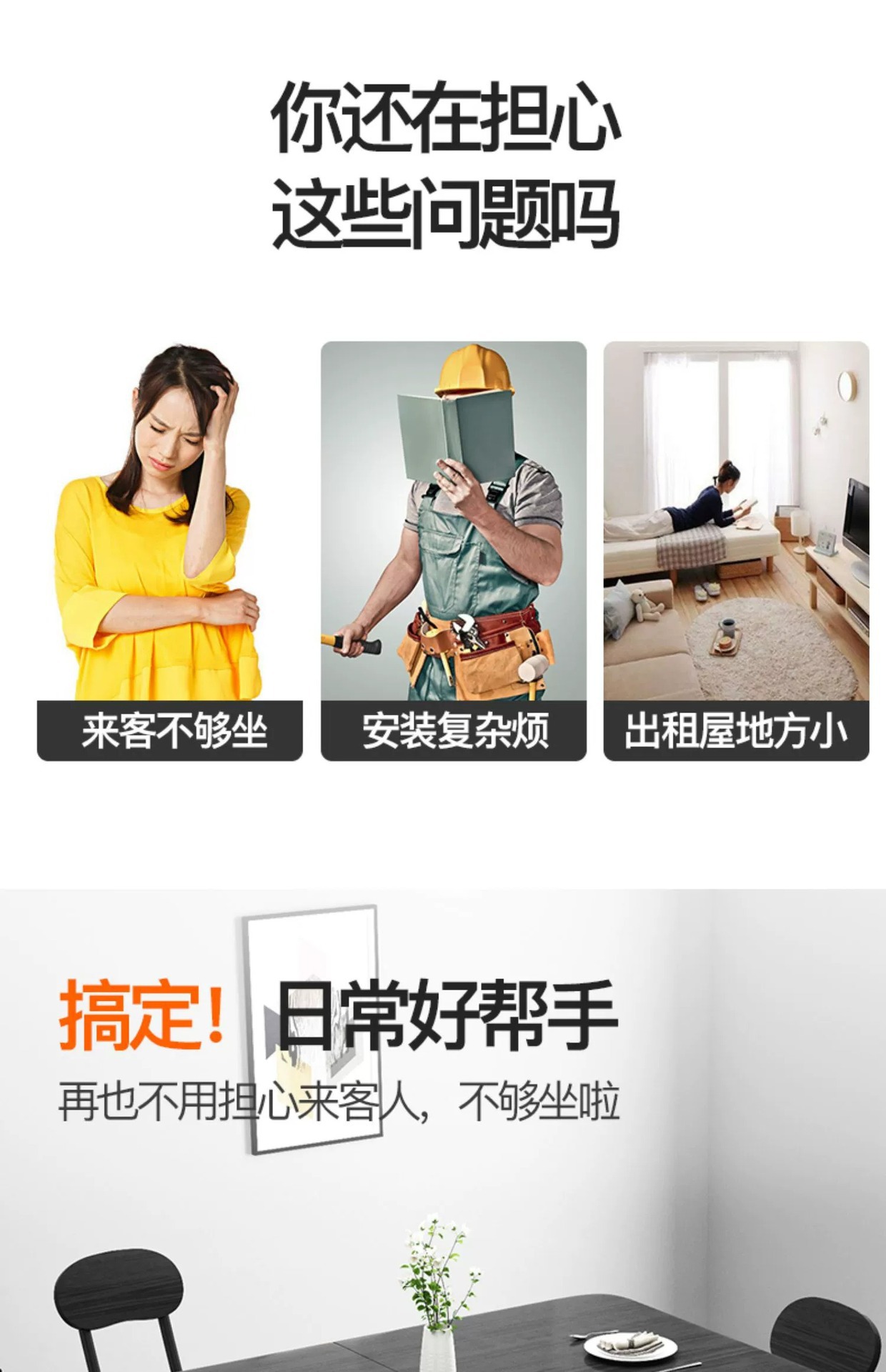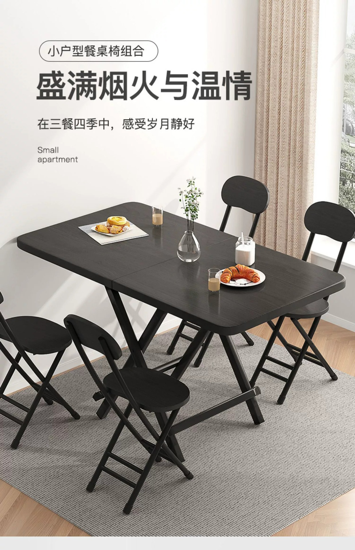 折叠餐桌家用小户型多功能可移动桌子组合四凳长方形吃饭桌子