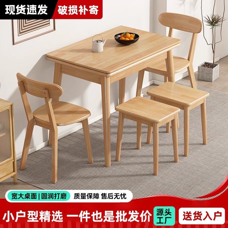 小さな家庭用折りたたみダイニングテーブル、モダンでシンプルな格納式長方形北欧無垢材のダイニングテーブルと椅子の組み合わせテーブル