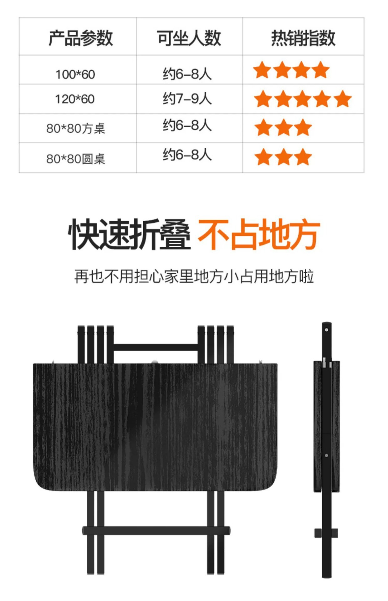 折叠桌家用吃饭桌子户外便携摆摊桌可收纳简易小户型出租房餐桌椅