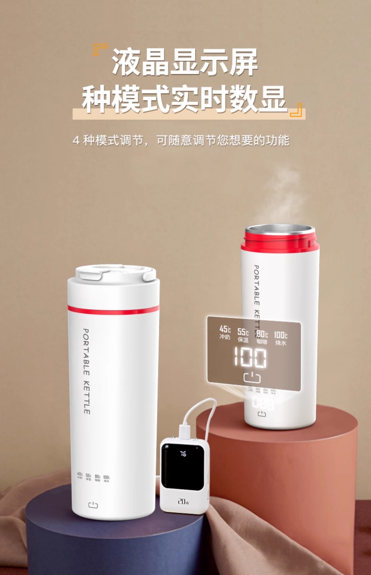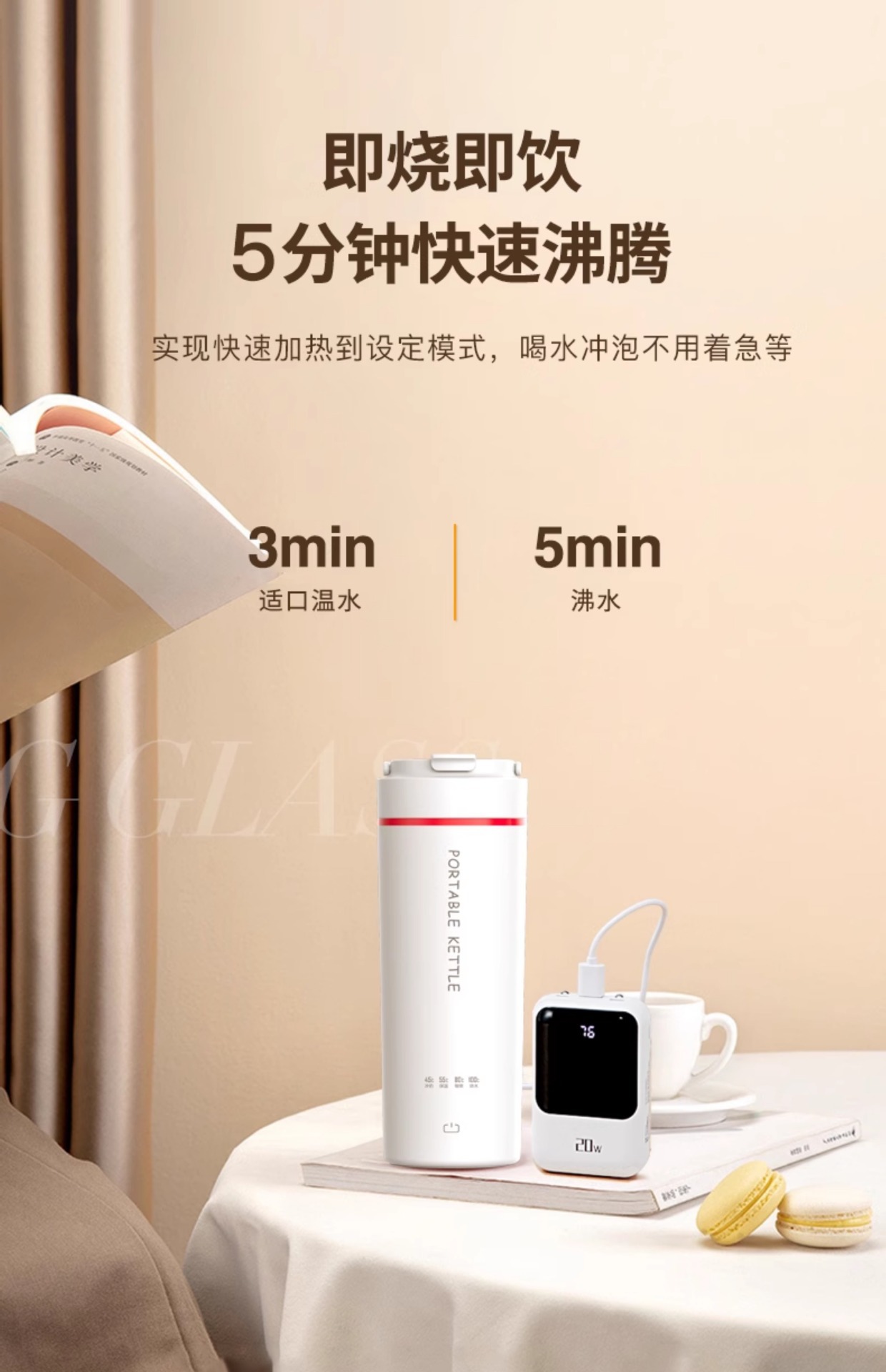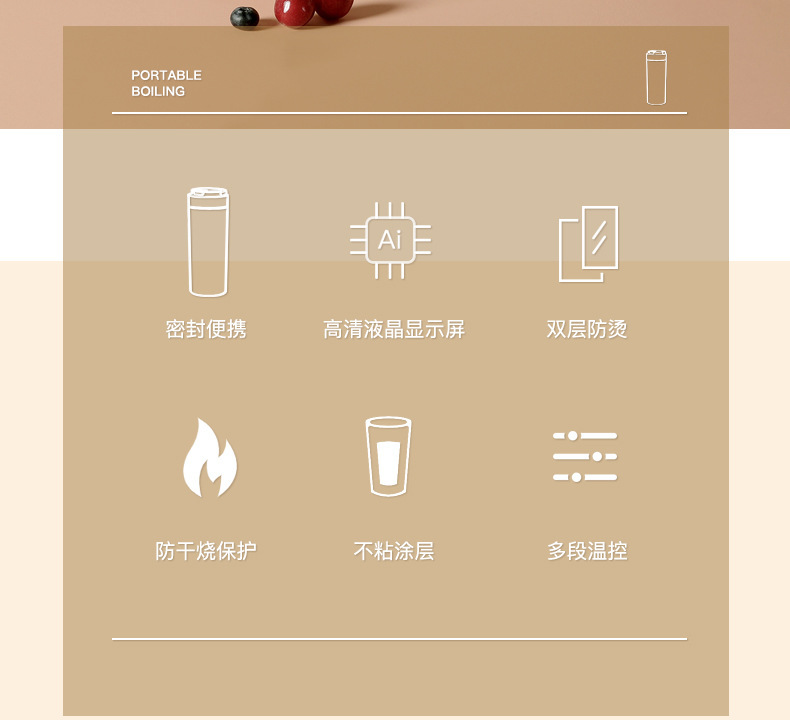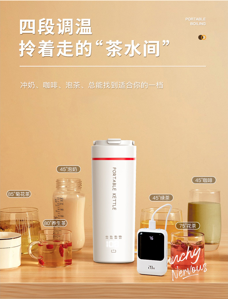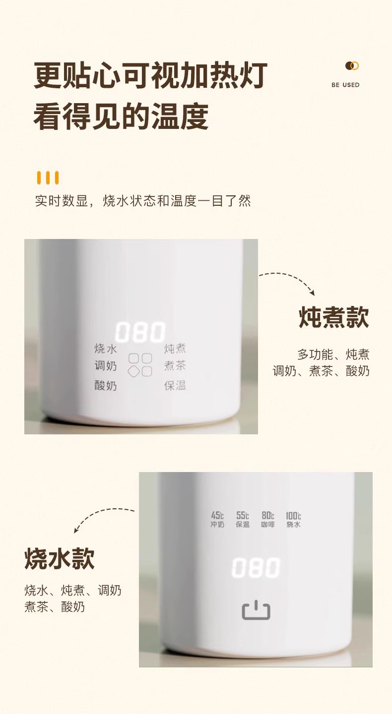 スマートポータブル多機能湯沸かし器湯沸かし器電気コップ寮家庭用旅行出張恒温水筒