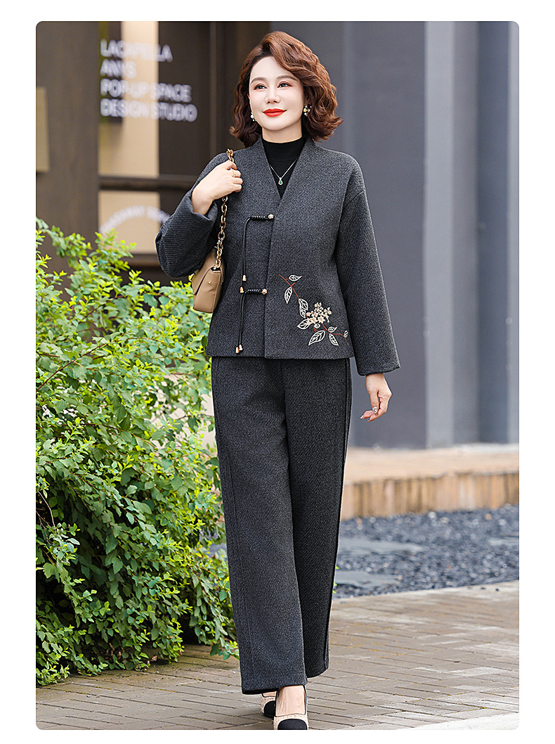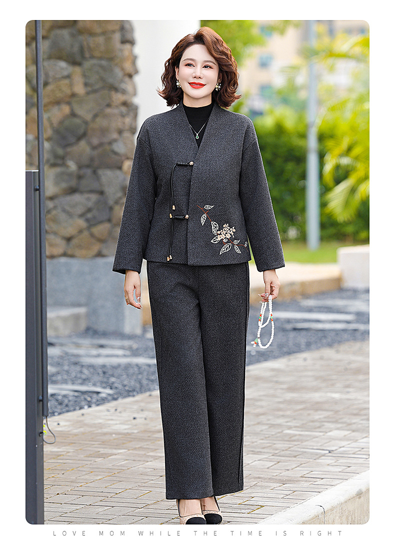 冬装妈妈装新中式上衣加绒加厚保暖外套中老年女装仿水貂绒大衣冬