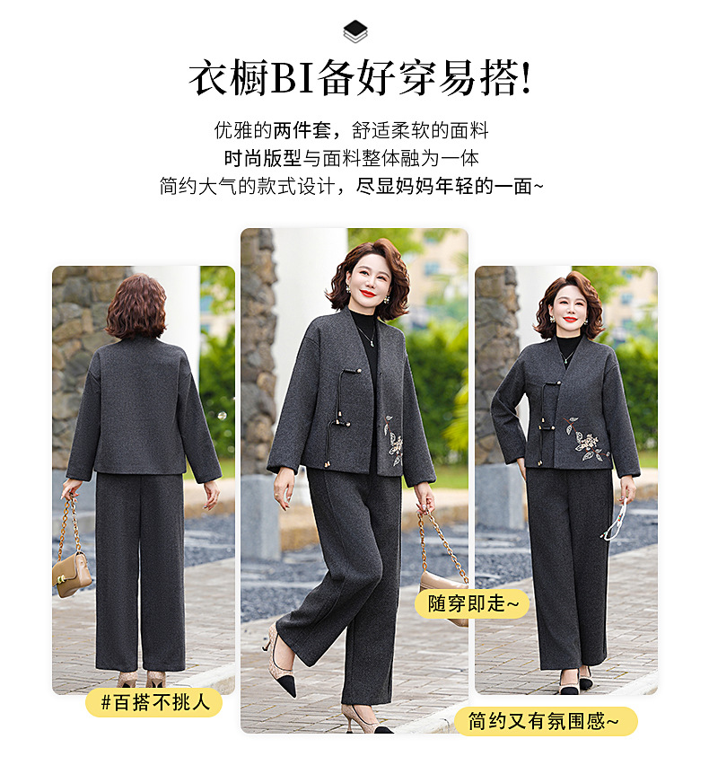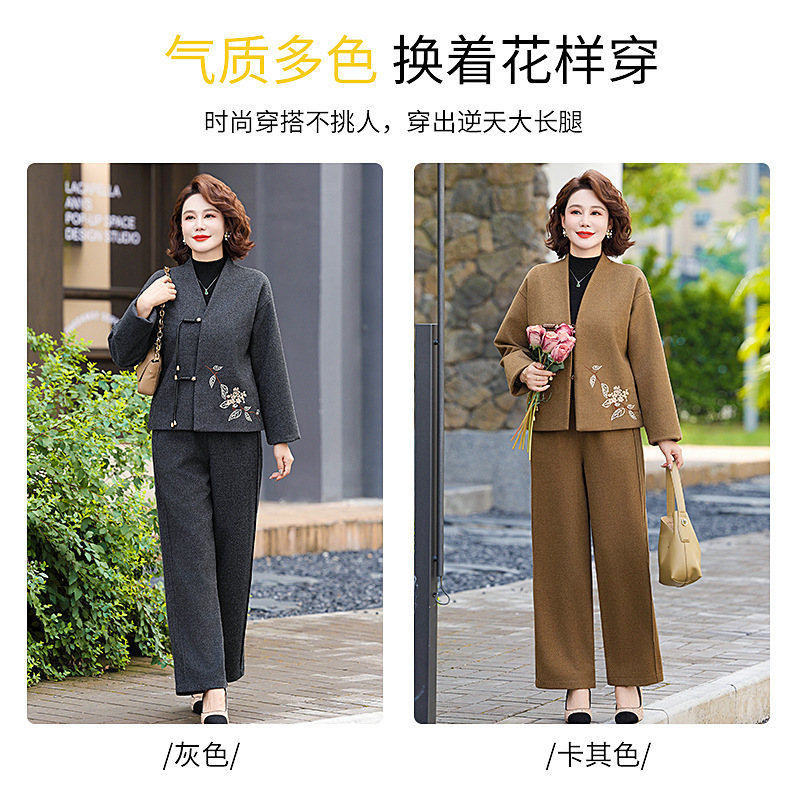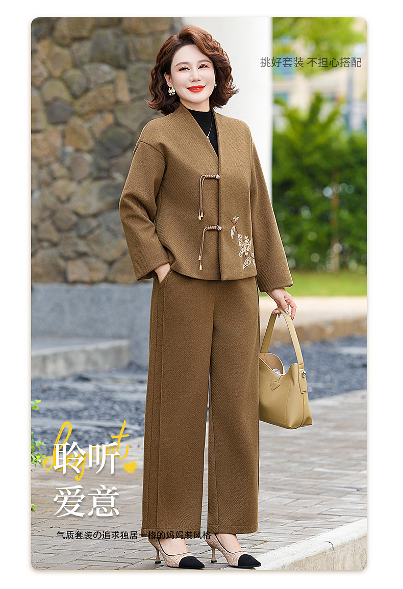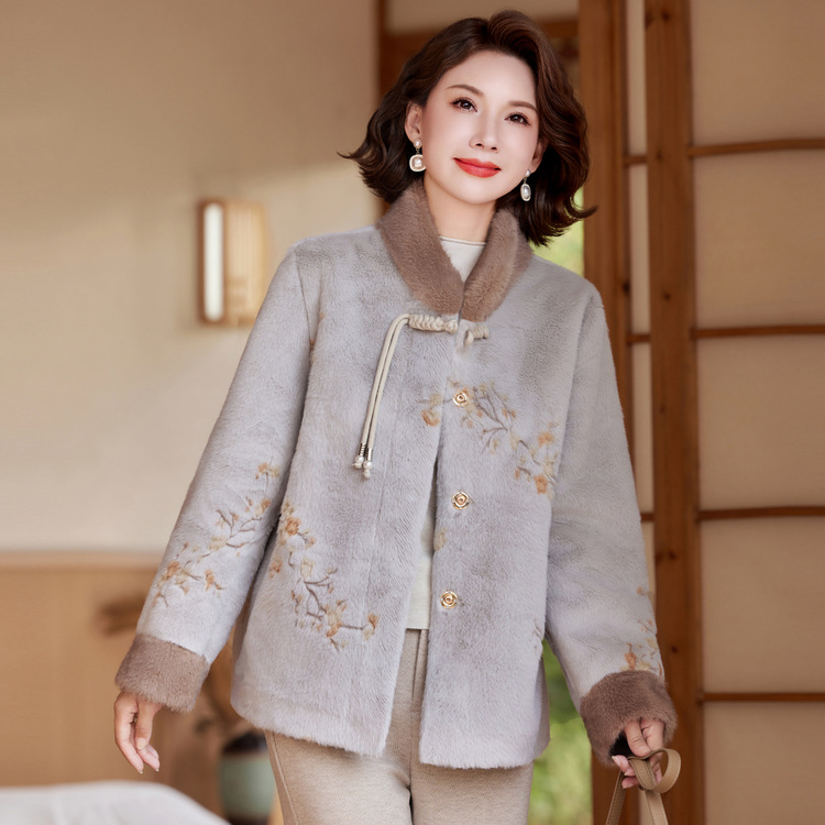 妈妈冬装水貂绒外套中式国风皮草中老年女秋冬新款皮毛一体毛呢子