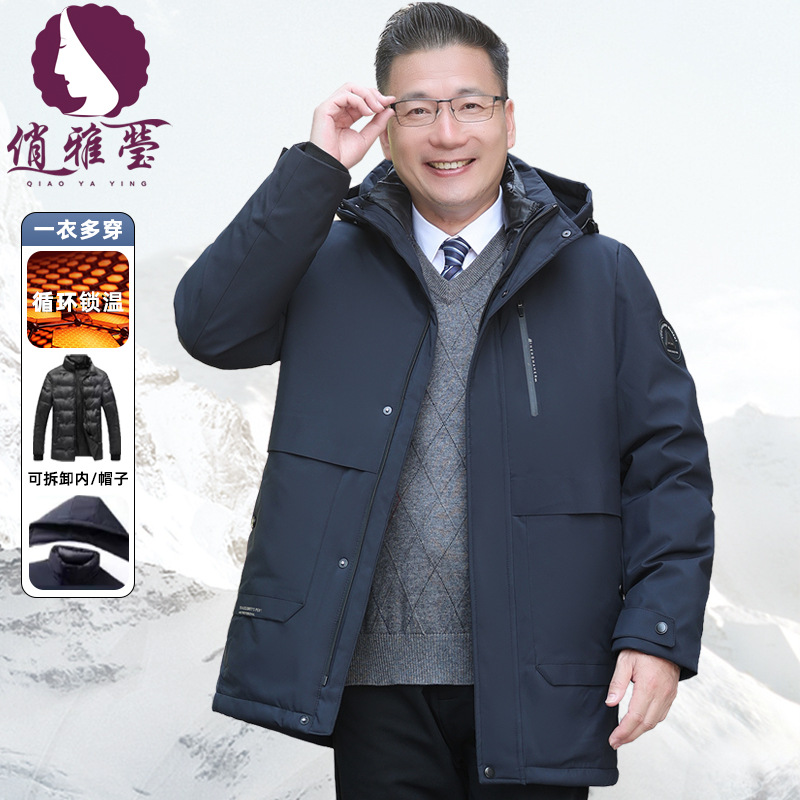 【一衣三着】冬の新型50歳の中高年男性服は、内胆ダウンジャケットとベルベットの父親服を脱ぐことができる
