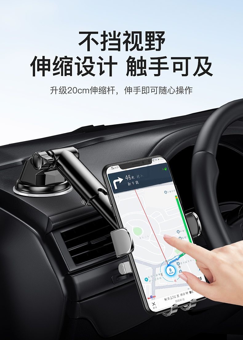 车载手机支架汽车吸盘式通用出风口伸缩便捷导航支架稳固防抖支架