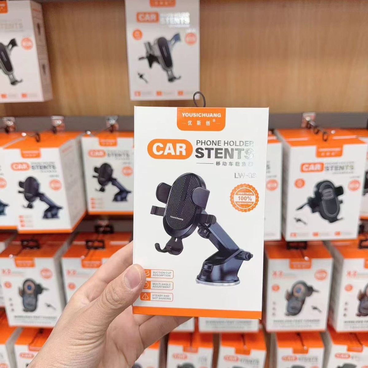 优斯创LW-03车载吸盘式自动锁手机支架汽车通用多功能导航支撑架