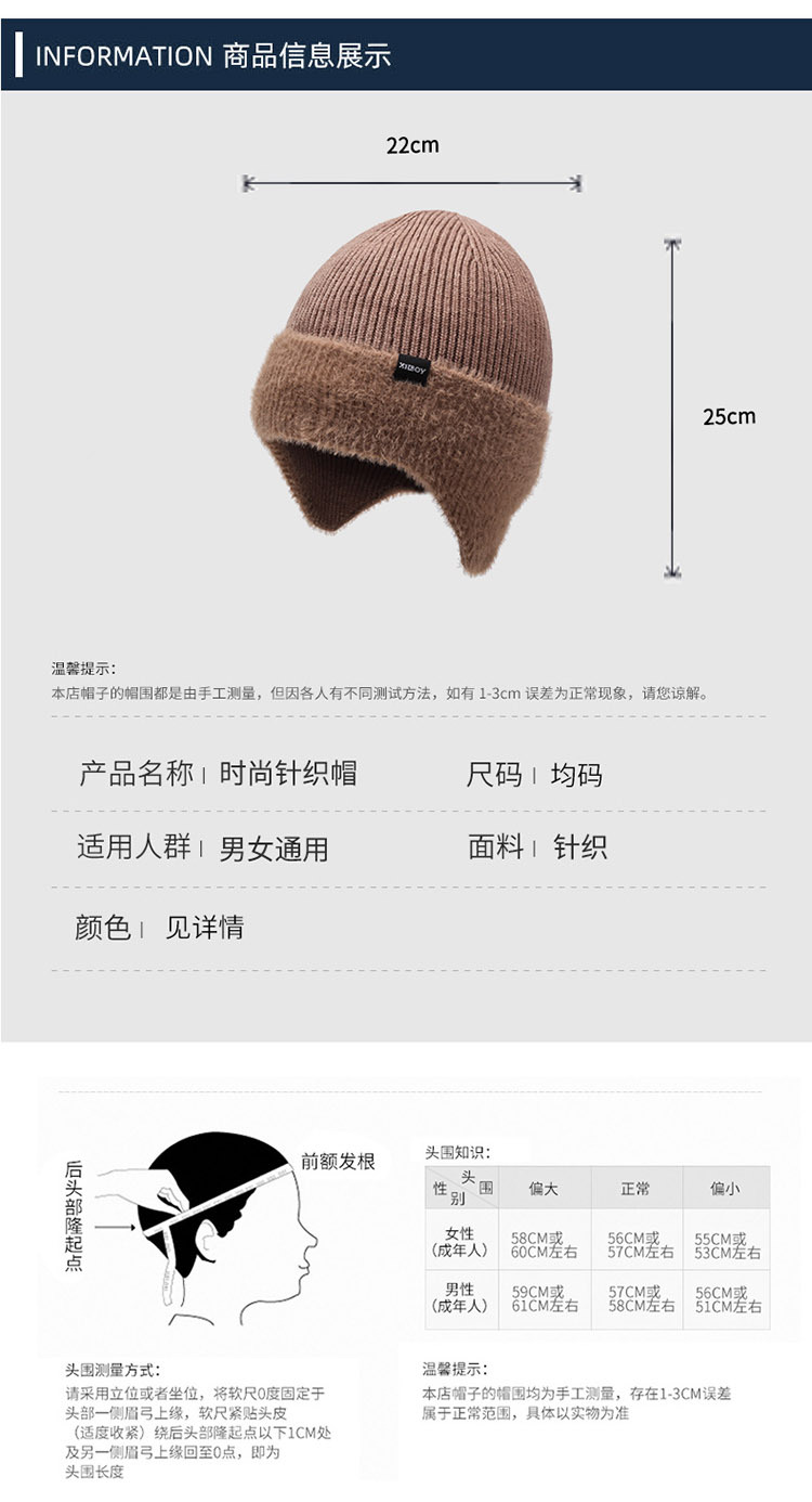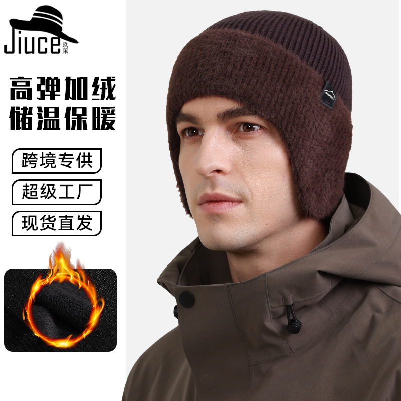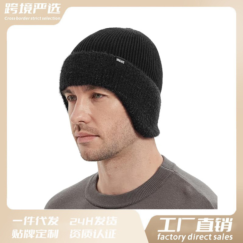 跨境秋冬针织护耳帽男女加绒保暖毛线帽户外骑行防风防寒帽子厂家