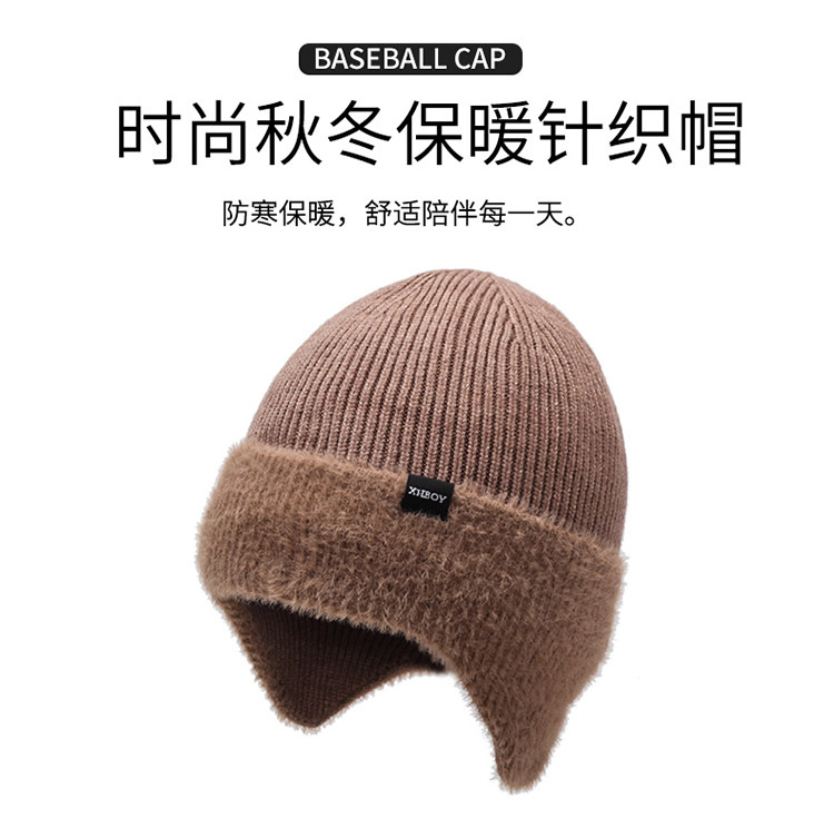 耳保護毛糸帽男性2024冬の新型ベルベットは保温ニット帽に乗って帽子卸売りをした