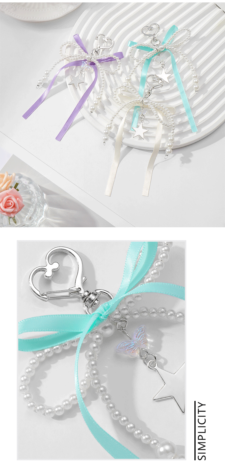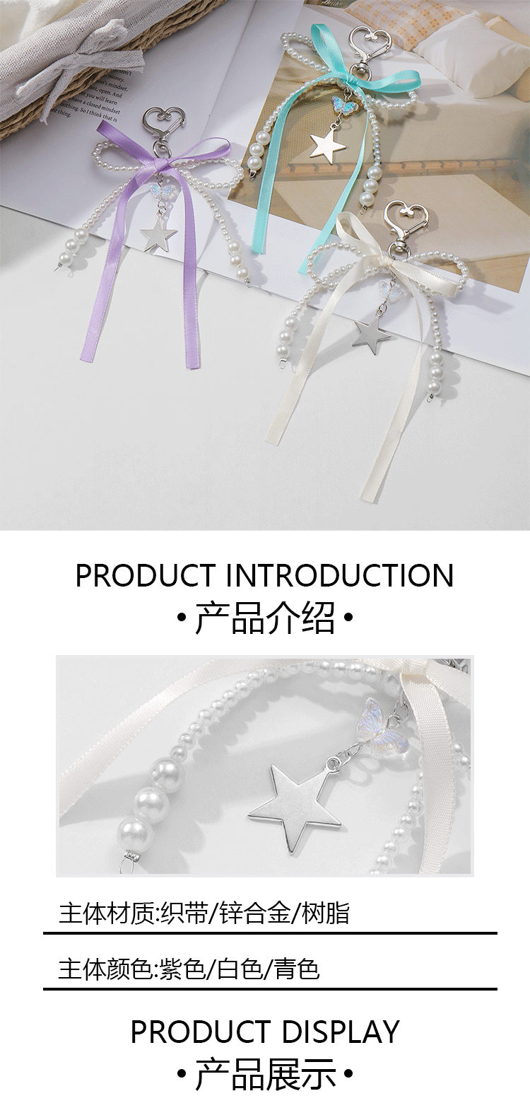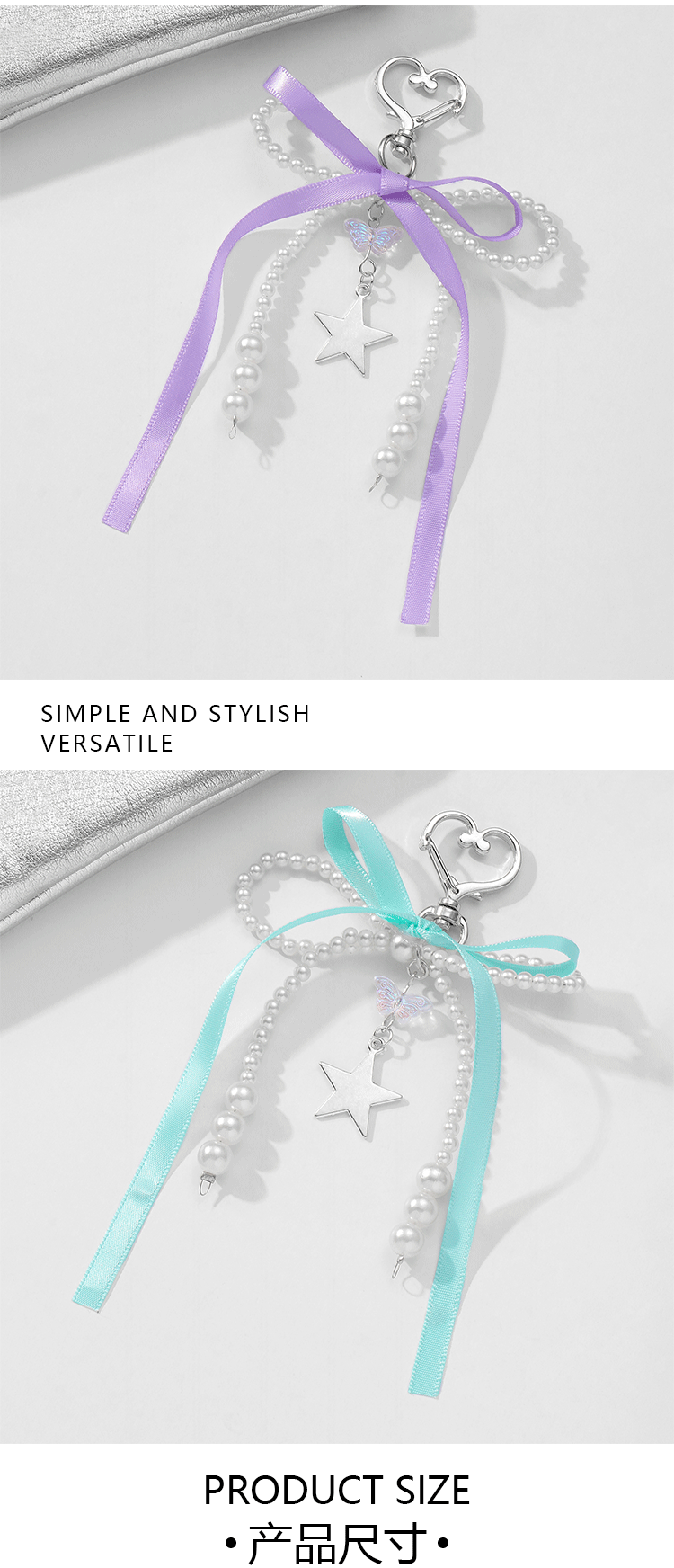 クロスボーダーの爆発金は簡単でカジュアルな組み合わせです。手作りのビーズは真珠のリボンの星のペンダントのキーホルダーに似せています。