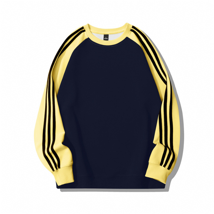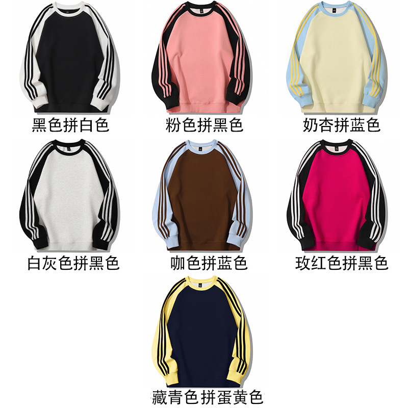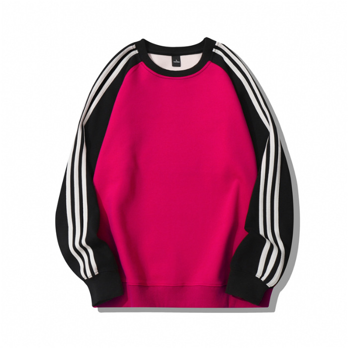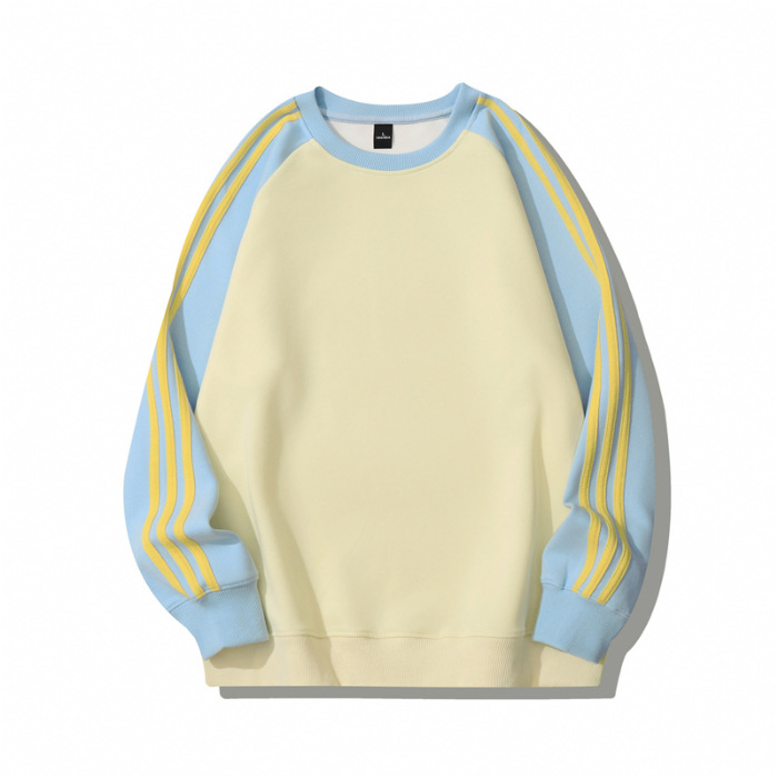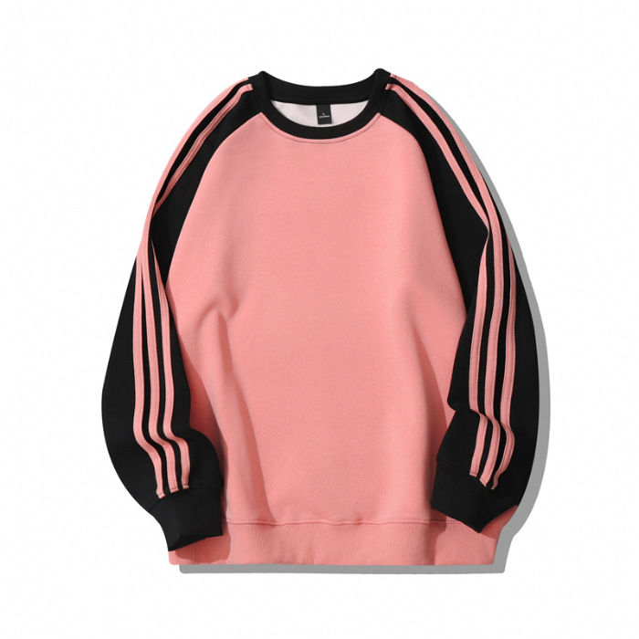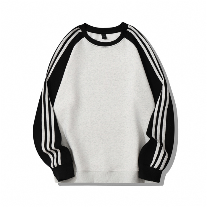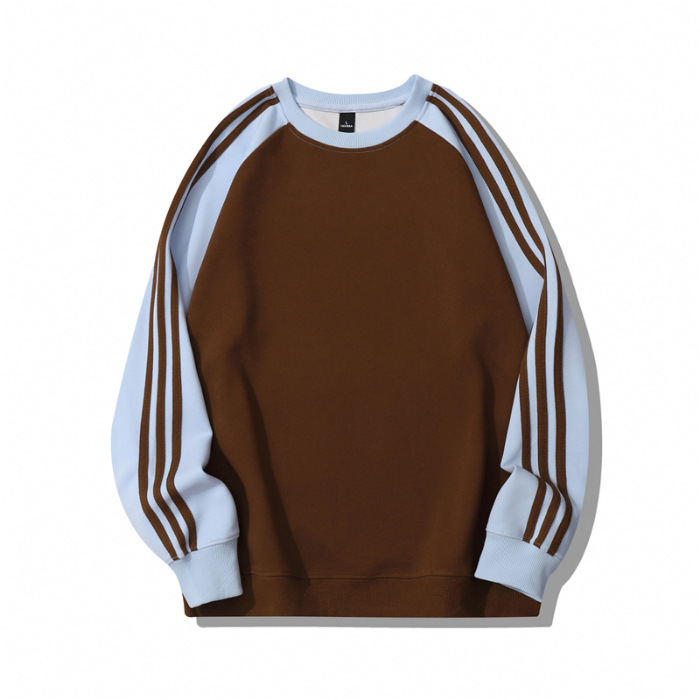 秋冬厚手スウェット320g、コントラストカラーのラグラン、三本ライン入りトップス、カップル向け、韓国風ラウンドネック、アメリカンレトロ、越境
