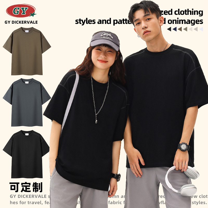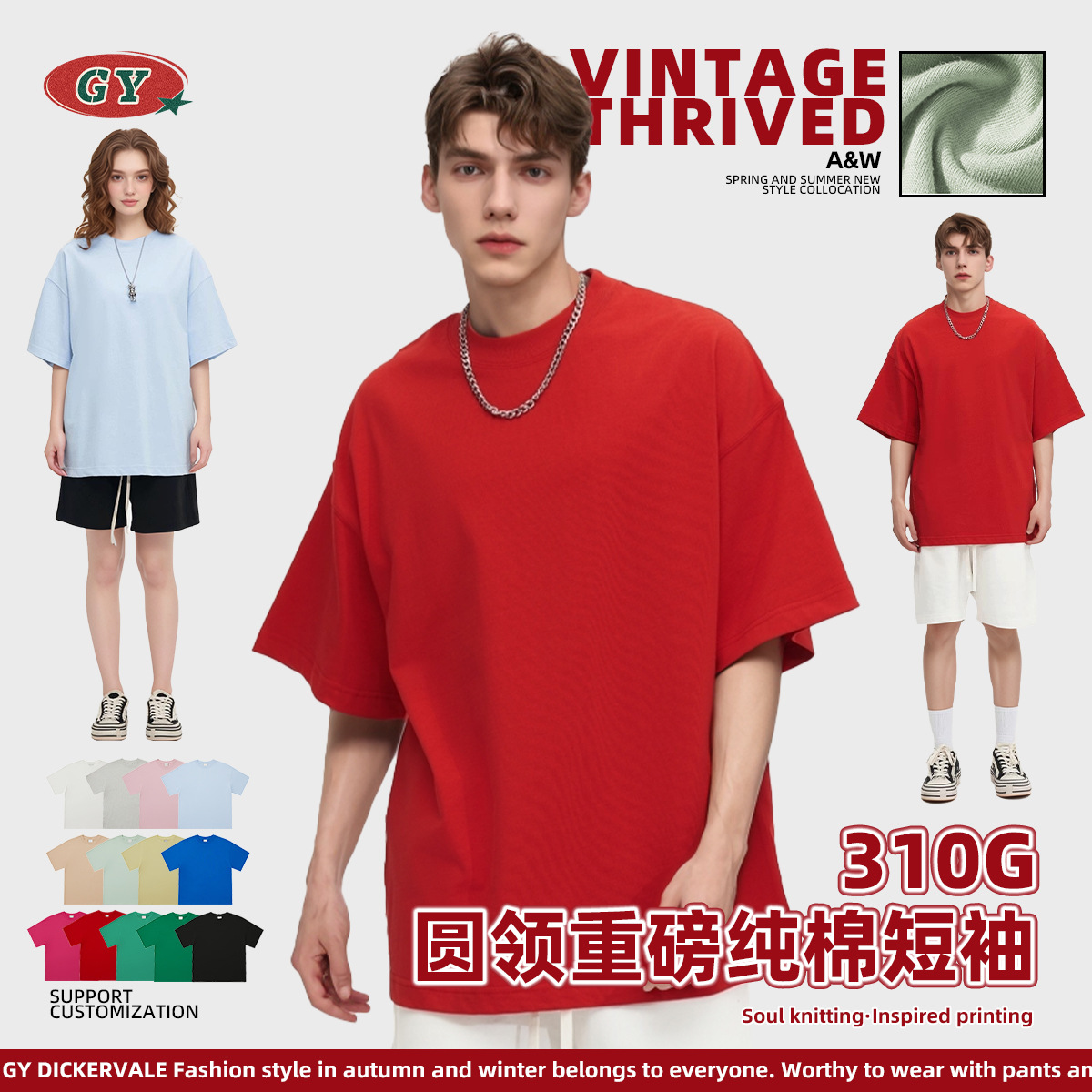 Jufeng ファブリック 310G ヘビーデューティー硬質バージョン純綿ラウンドネックルーズ夏男性と女性のビッグブランド半袖 T シャツ