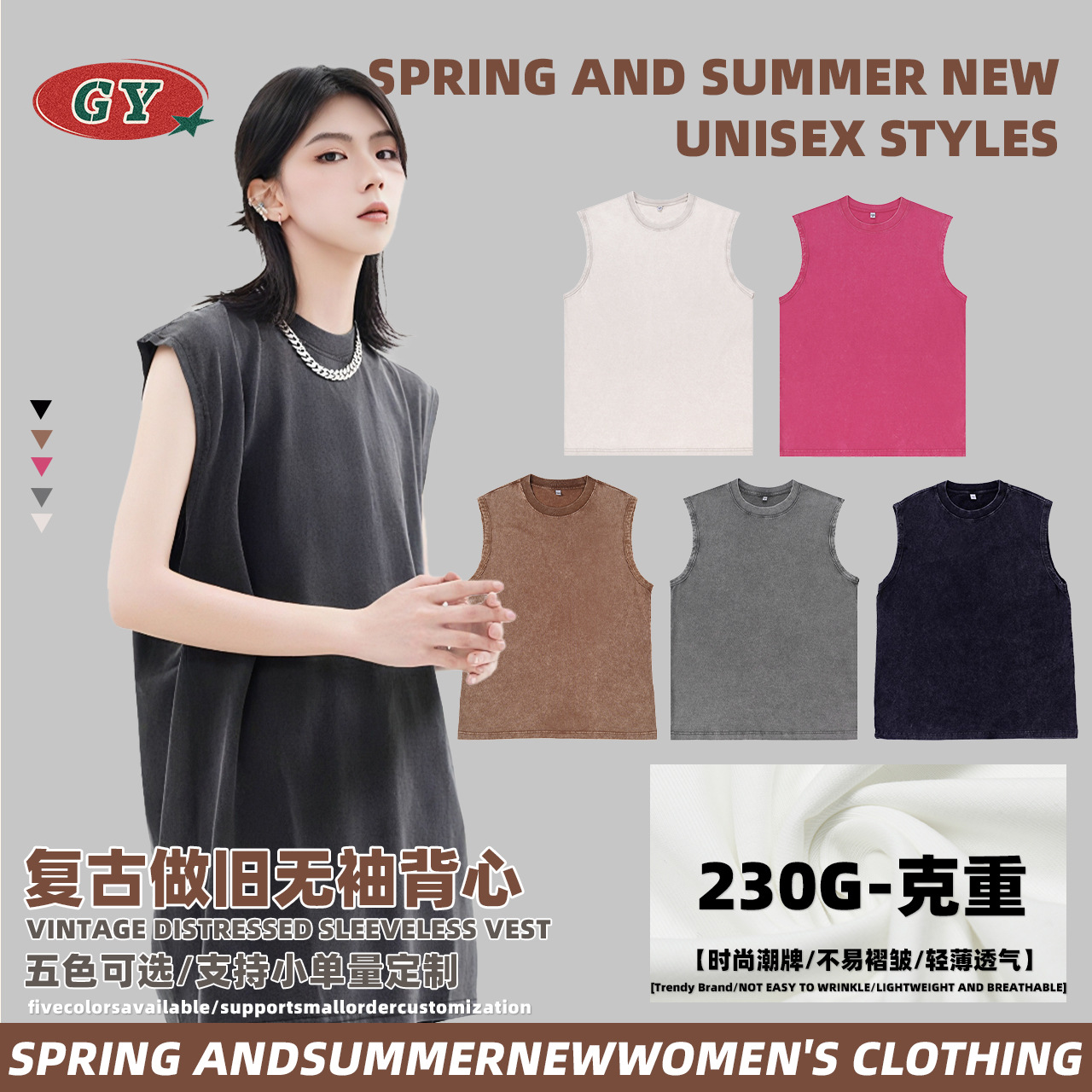 230gアメリカンウォッシュ加工ノースリーブTシャツメンズ純綿欧米サイズレトロベスト2025タンクトップレトロトレンド