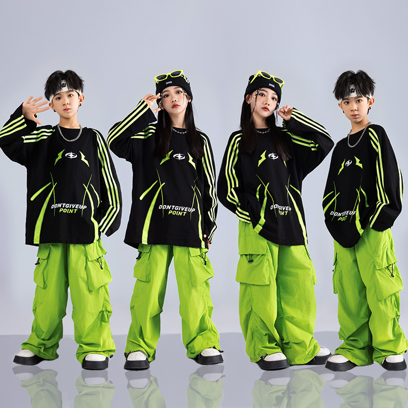 街のダンスの子供のファッション服の子供のヒップホップのクールでかっこいいショーの服装の男女の子供のhiphopのドラムの小学生の運動会