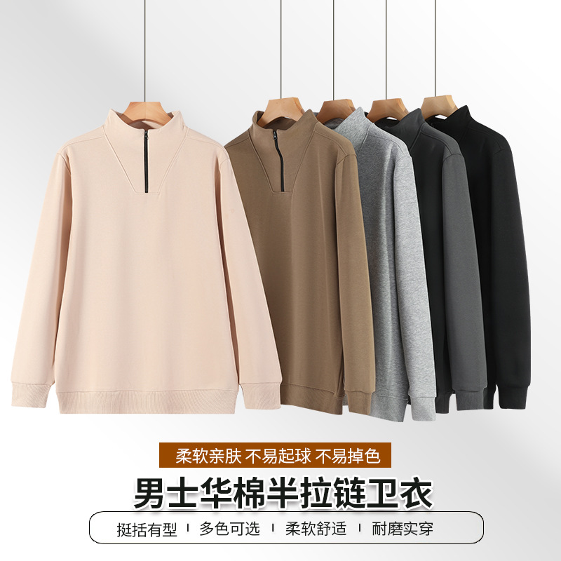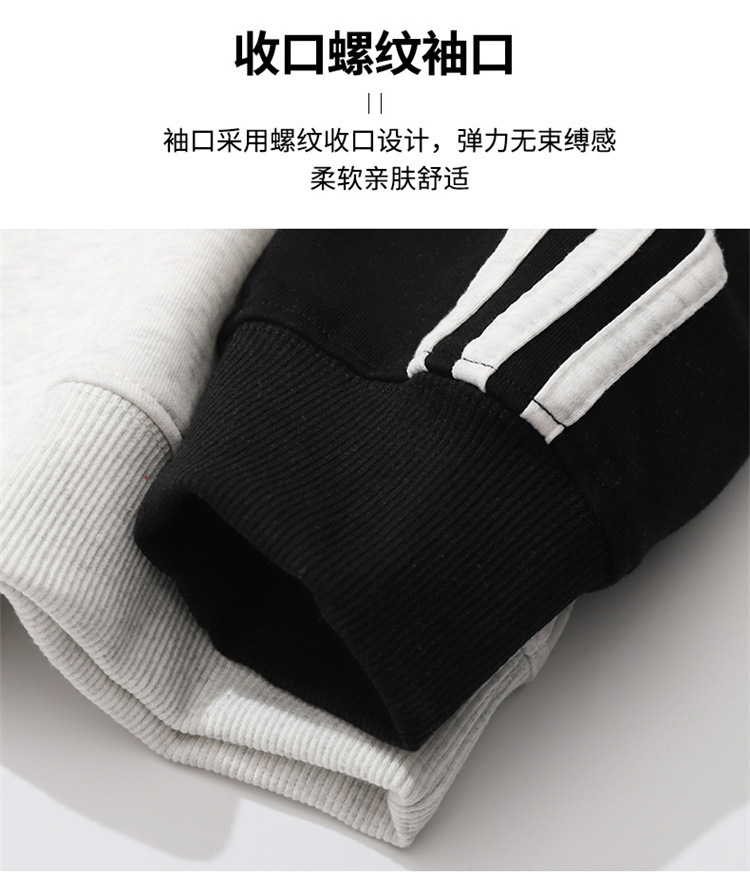 華綿加厚フリース半ジップスタンドカラースウェットシャツ、カスタムメイド、男女兼用、三本ライン、ラウンドネック、カジュアルカーディガンジャケット