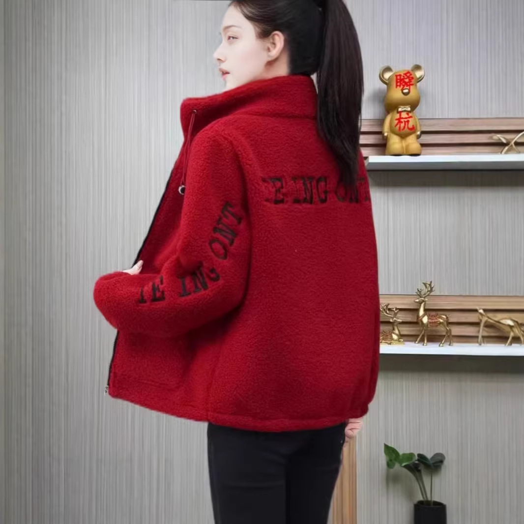冬季加绒加厚外套妈妈保暖棉衣减龄女装摇粒绒羊羔绒宽松显瘦上衣