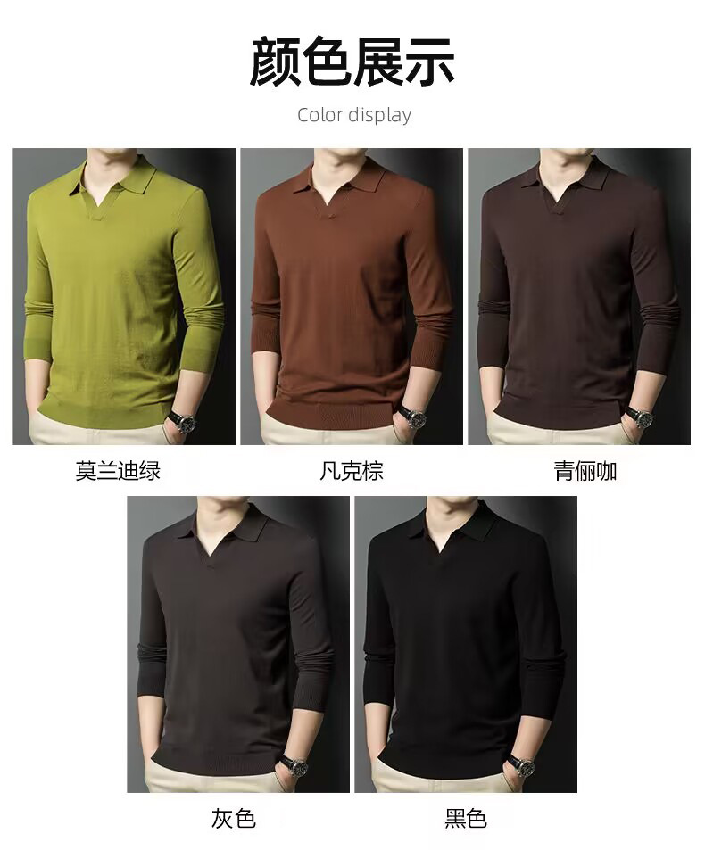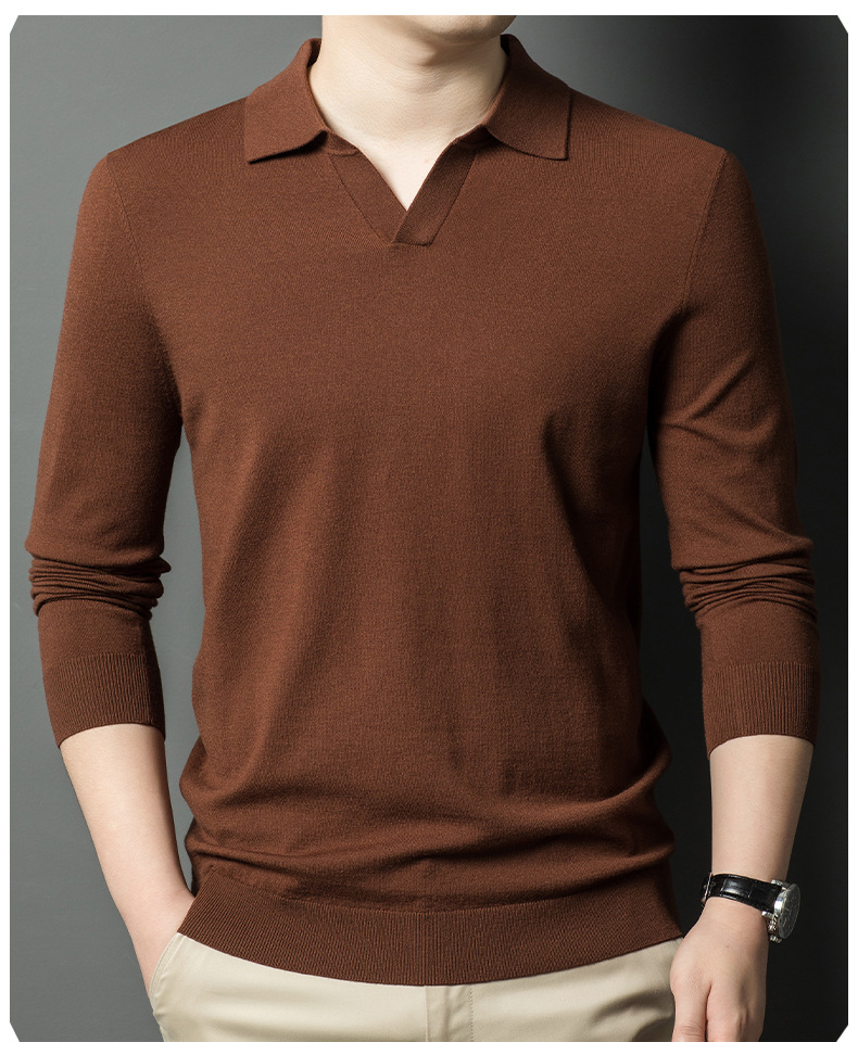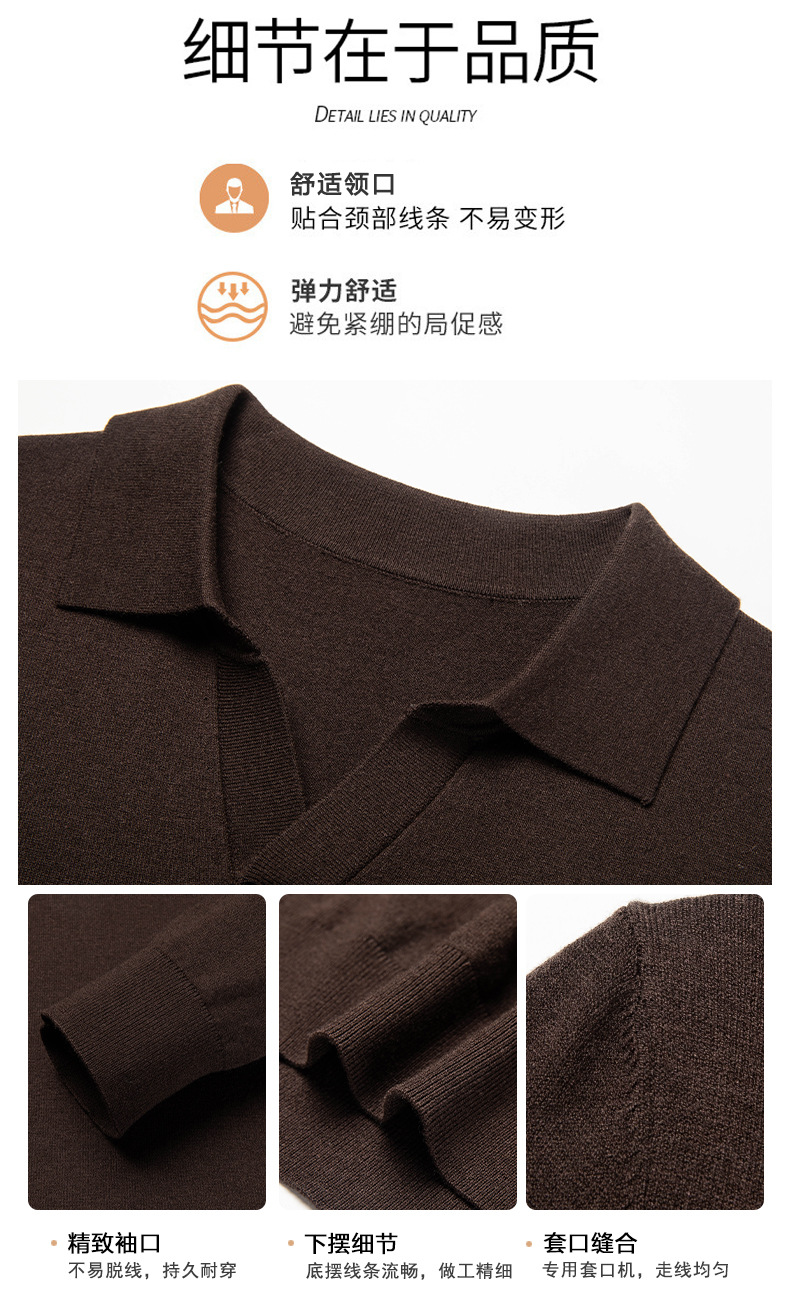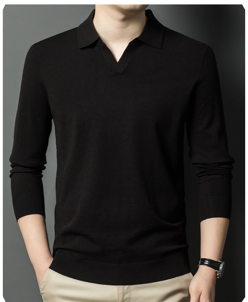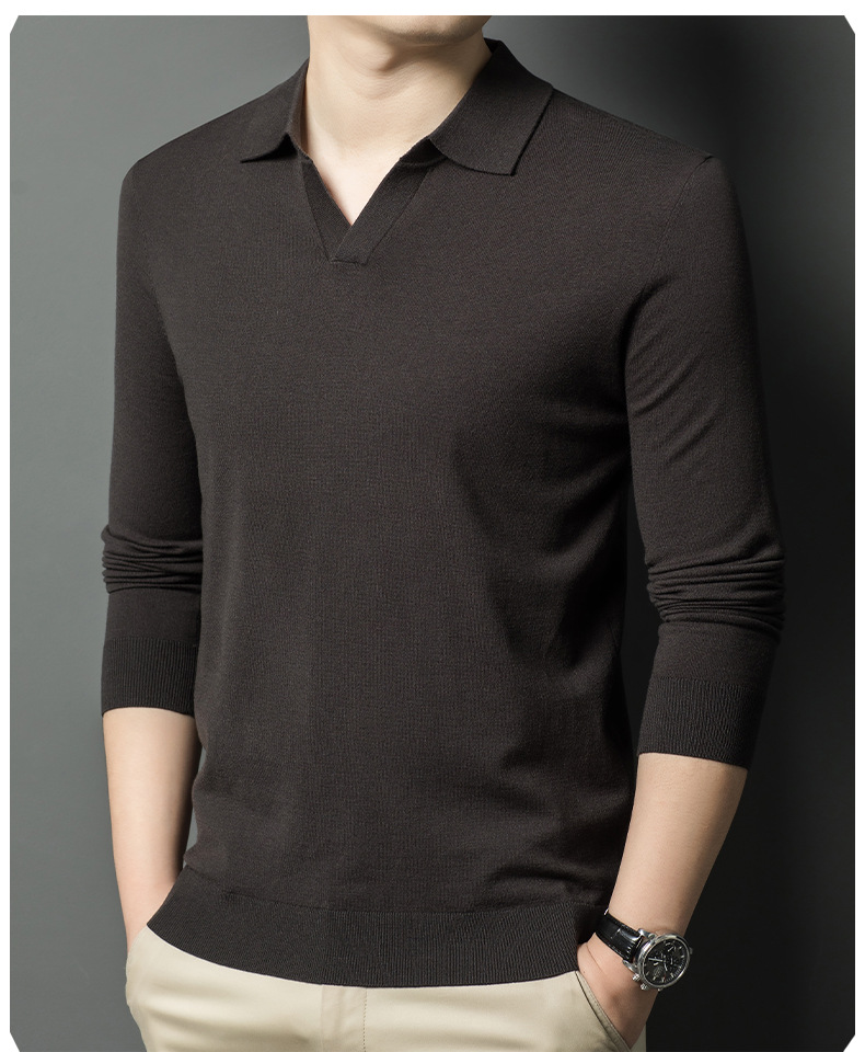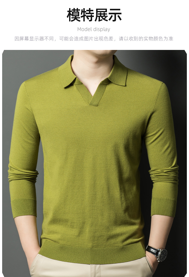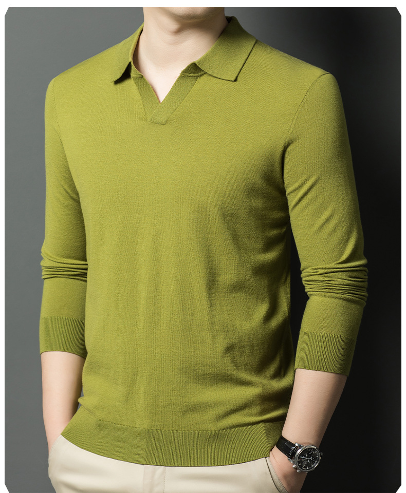 春秋カモメ襟ライセル天糸ウールメンズ抗起球ニット長袖poloシャツメンズ