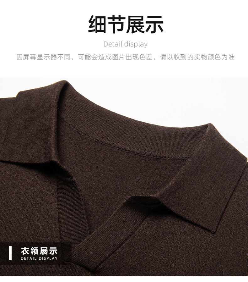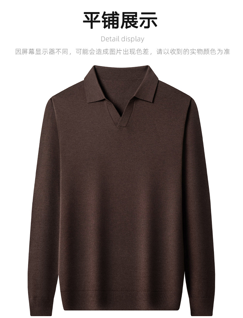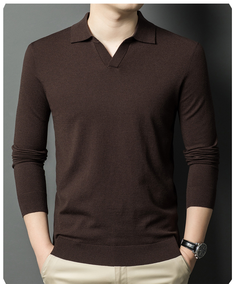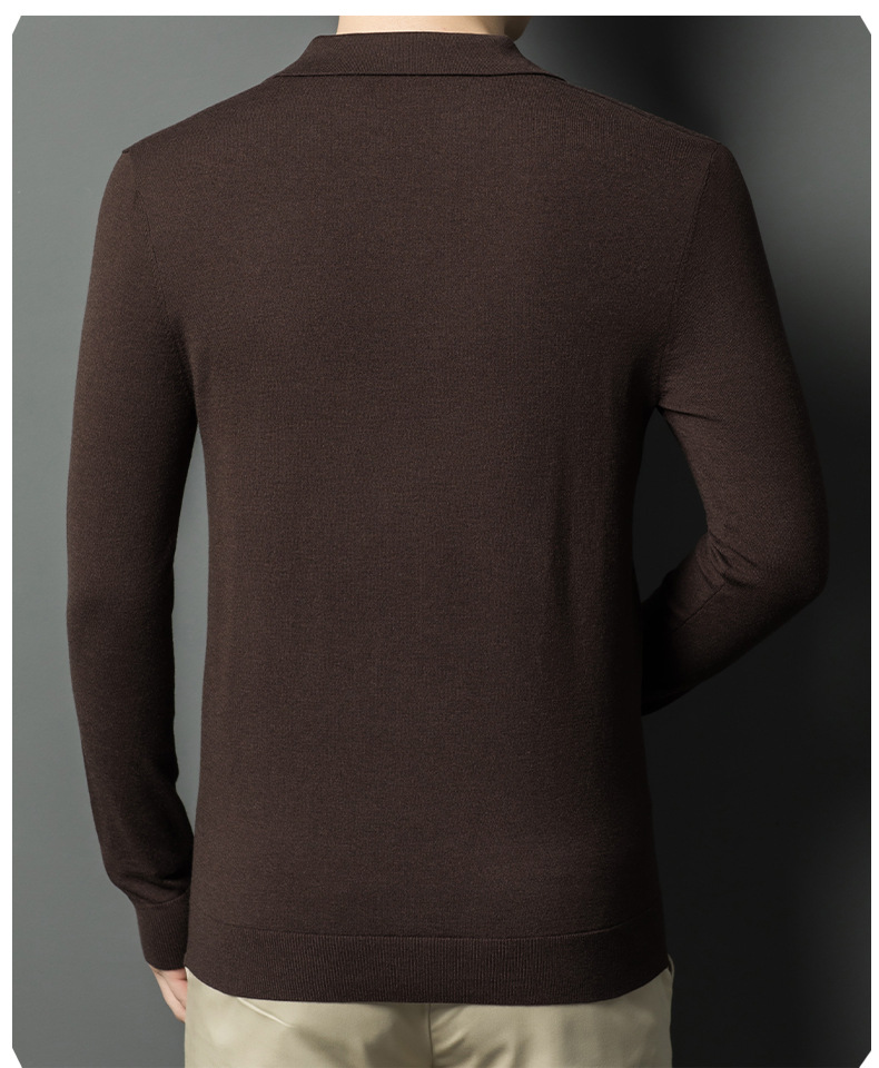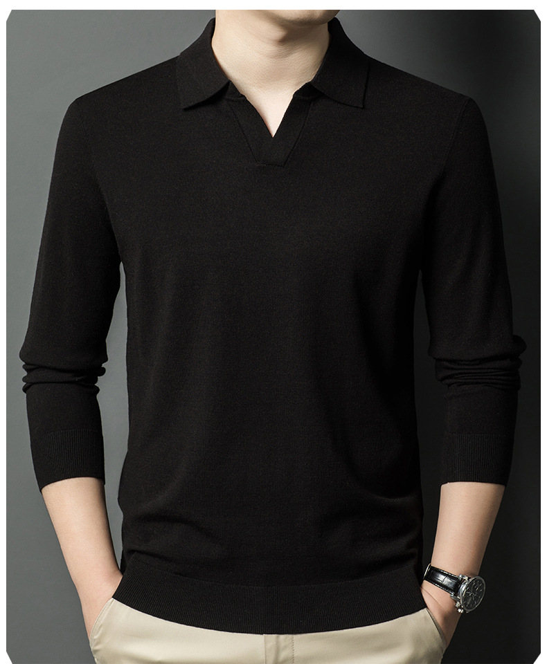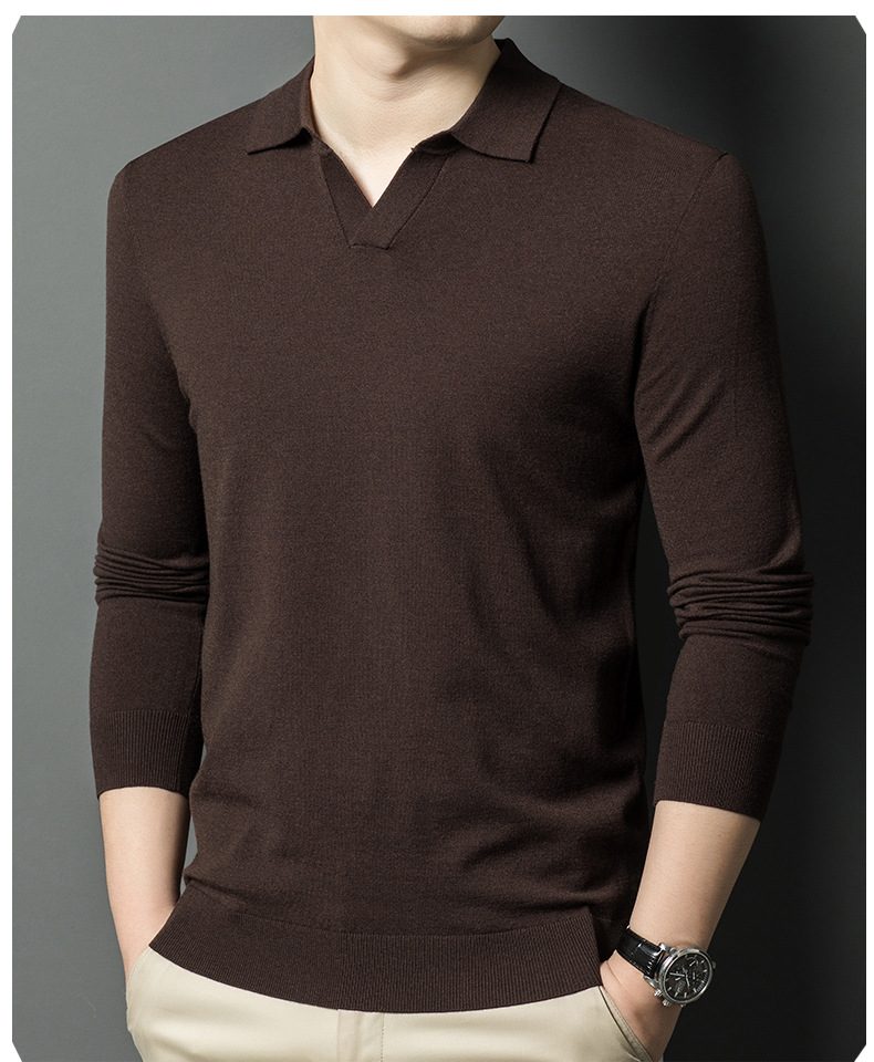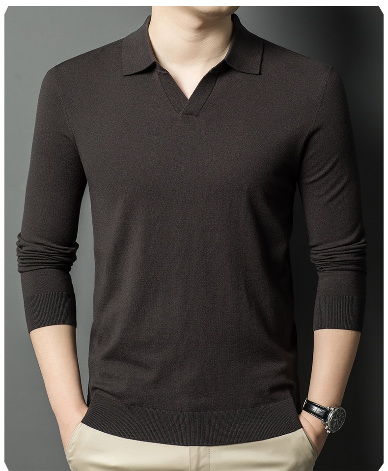 春秋カモメ襟ライセル天糸ウールメンズ抗起球ニット長袖poloシャツメンズ