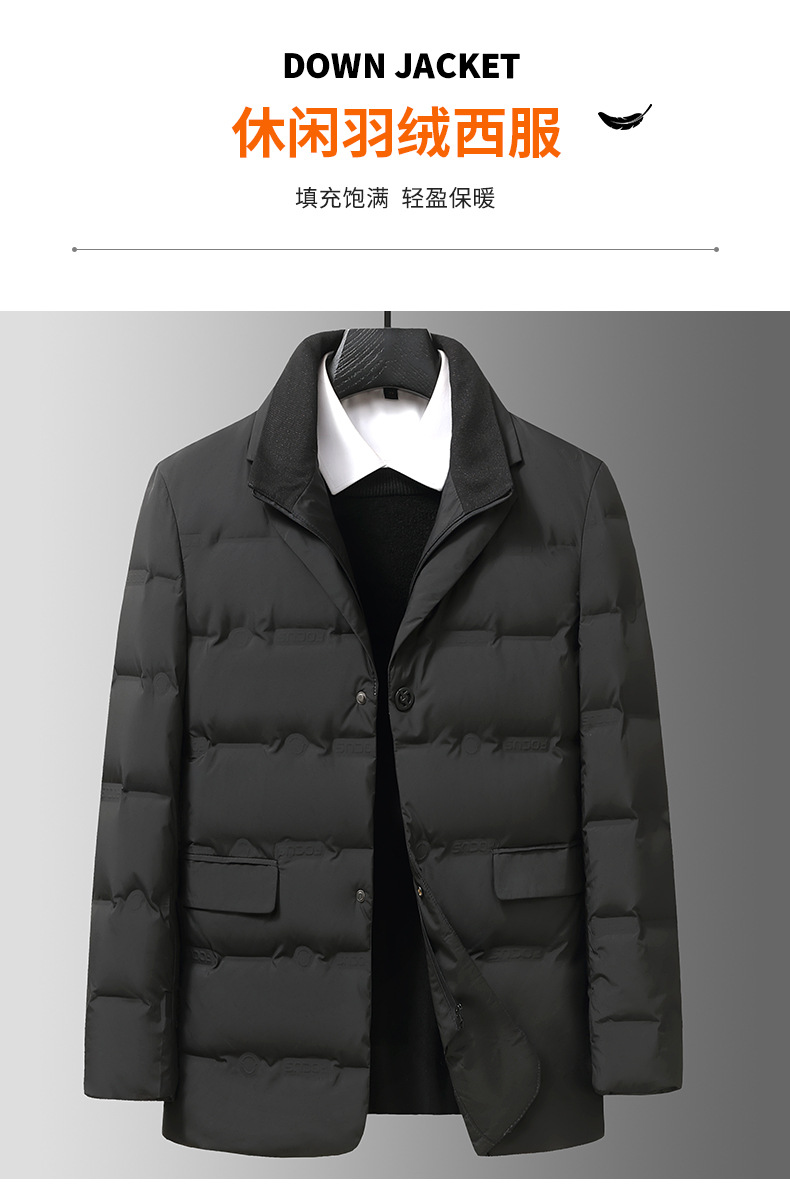 羽绒西装男2025冬季新款假两件西服式羽绒服商务保暖外套外贸爆款