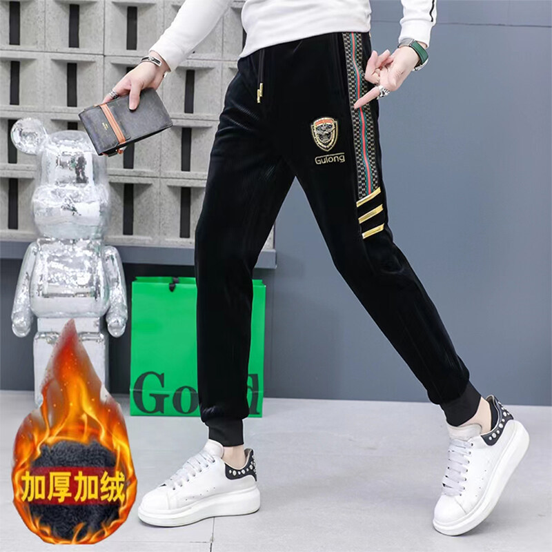 欧版カジュアルパンツ メンズ 秋冬 裏起毛 新作 トレンドブランド 刺繍入り スリムパンツ かっこいい ドローストリング ジョガーパンツ