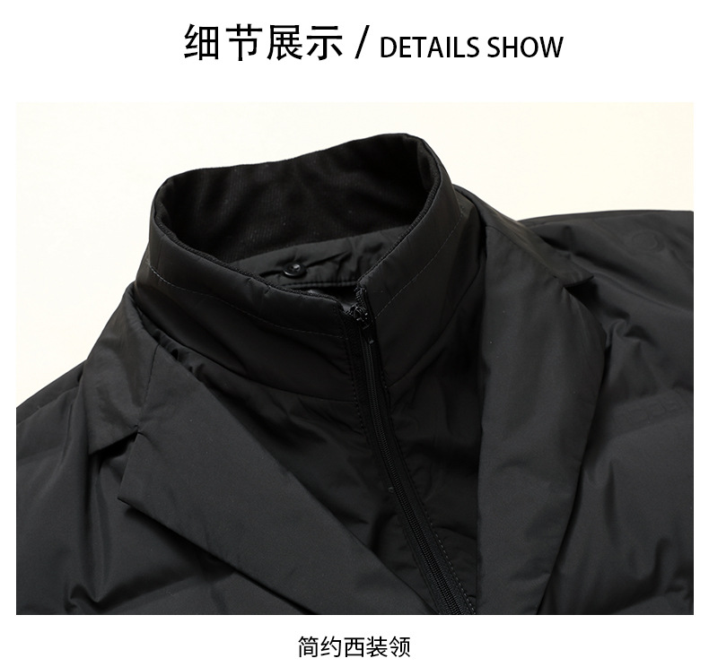 春節休業なし、複数商品でSF Expressで発送、スーツ風カジュアルファッションダウンジャケット、取り外し可能なスタンドカラー、フェイクツーピースメンズジャケット