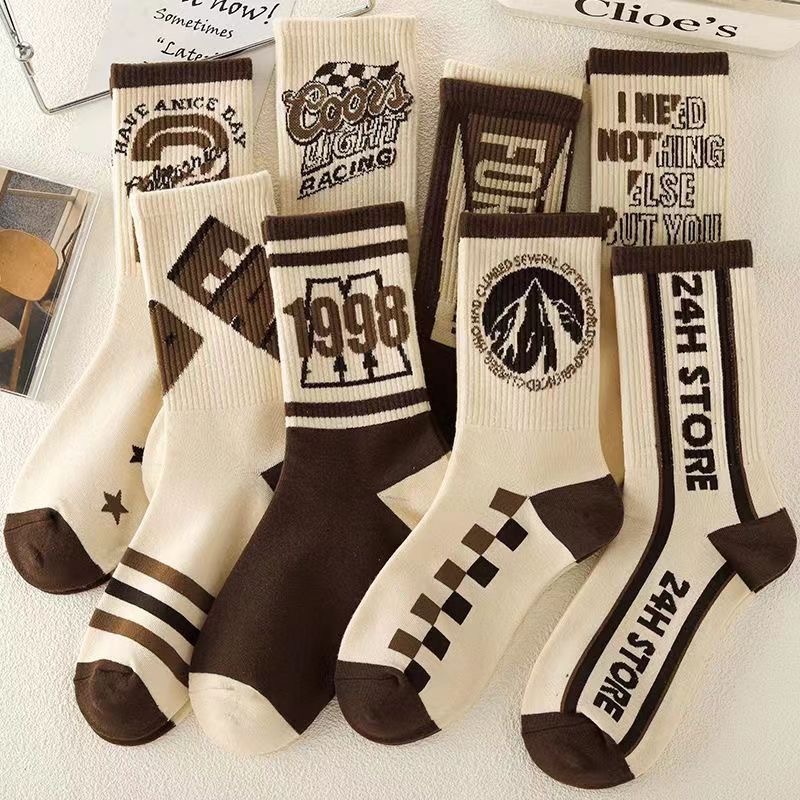 袜子男款长袜秋冬款ins潮百搭中筒美式复古运动学生篮球长筒男袜