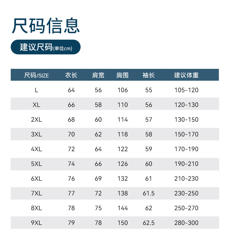 サイズ L,XL,2XL,3XL,4XL,5XL,6XL,7XL,8XL,9XL