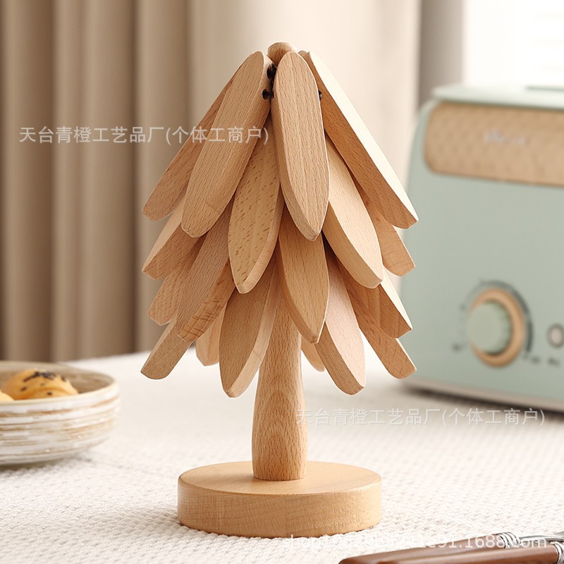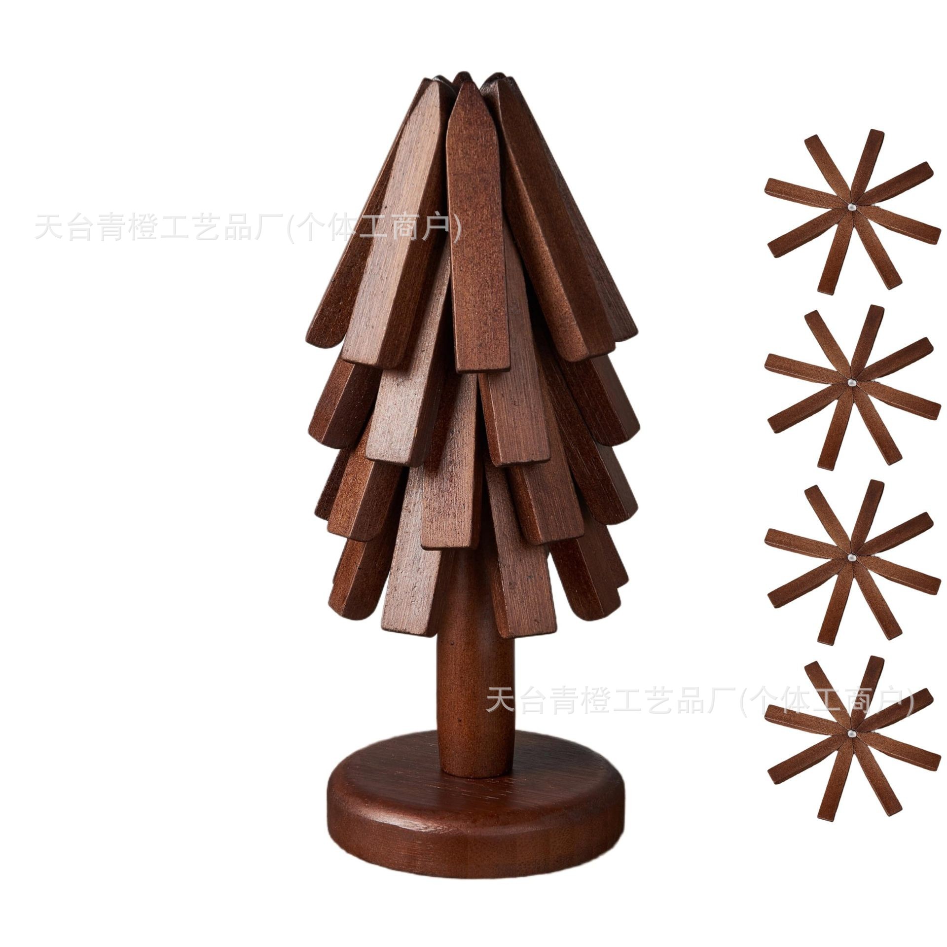 胡桃色木质创意一棵树隔热垫圣诞树实木隔热餐桌垫家用杯垫砂锅垫